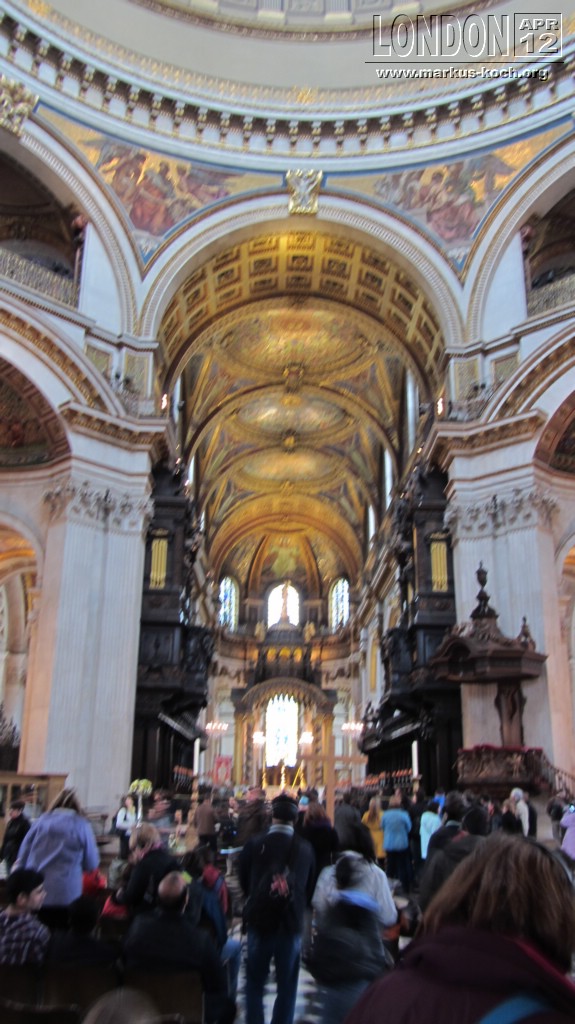 Unsere Tour bzw. (Foto)Stops: Buckingham Palace, Houses of Parliament mit Big Ben, Westminster Abbey, Downing Street 10, Aussicht zum London Eye von der Westminster Bridge am Big Ben, am Hyde Park und Madame Tussauds vorbei über den Piccadilly Circus und Trafalgar Square zur St. Paul’s Cathedral. Dort sind wir auch rein zum besichtigen, u.a. um die wundervolle Aussicht von der Kuppel ganz oben über London zu genießen.