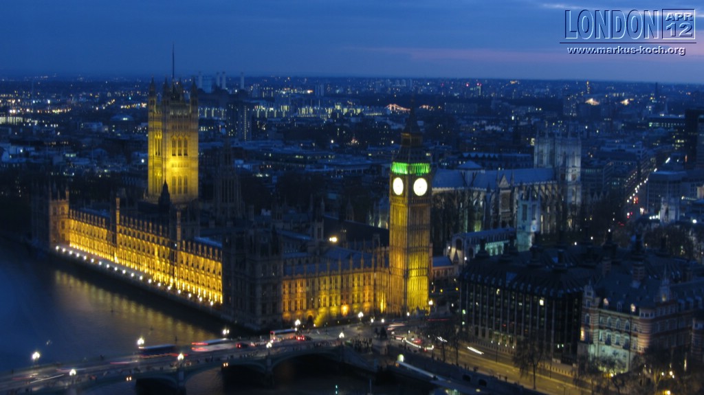 Nachdem wir uns frisch gemacht haben ging es mit der U-Bahn zum London Eye. Hier htten wir Fast-Tickets bereits im Vorverkauf um uns Zeit zu sparen. Um ca. 20 Uhr hoben wir ab um mit dem momentan größten Riesenrad Europas zu fahren. Ein fantastischer Blick über die beleuchtete Stadt, ganz besonders auf Big Ben & Houses of Parliament.