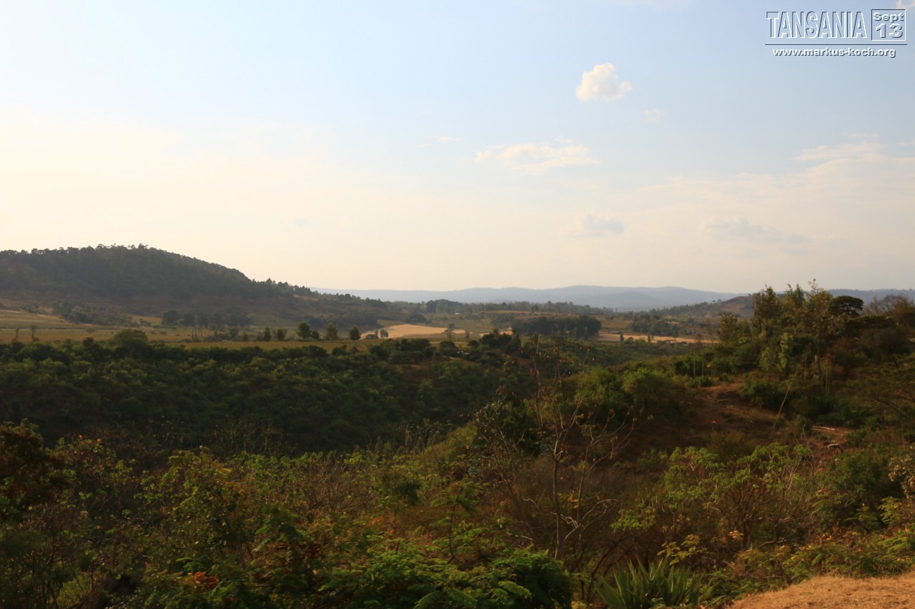 Nach einer erfrischenden Dusche saßen wir auf der High-View-Terrasse unseres Hotels. Ein toller Ausblick über das Land.