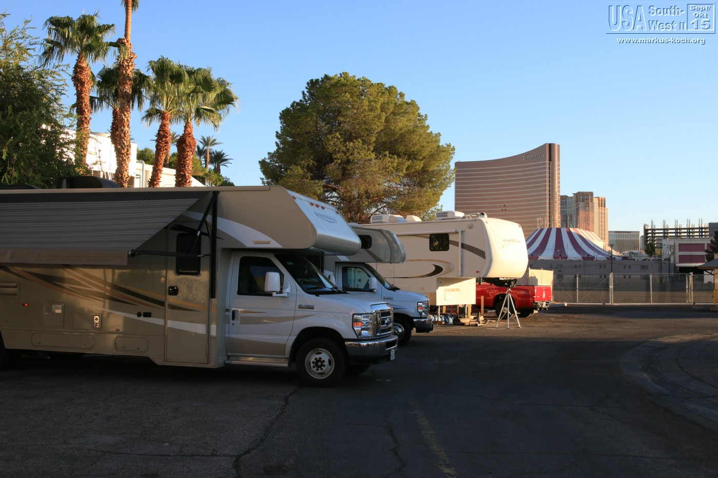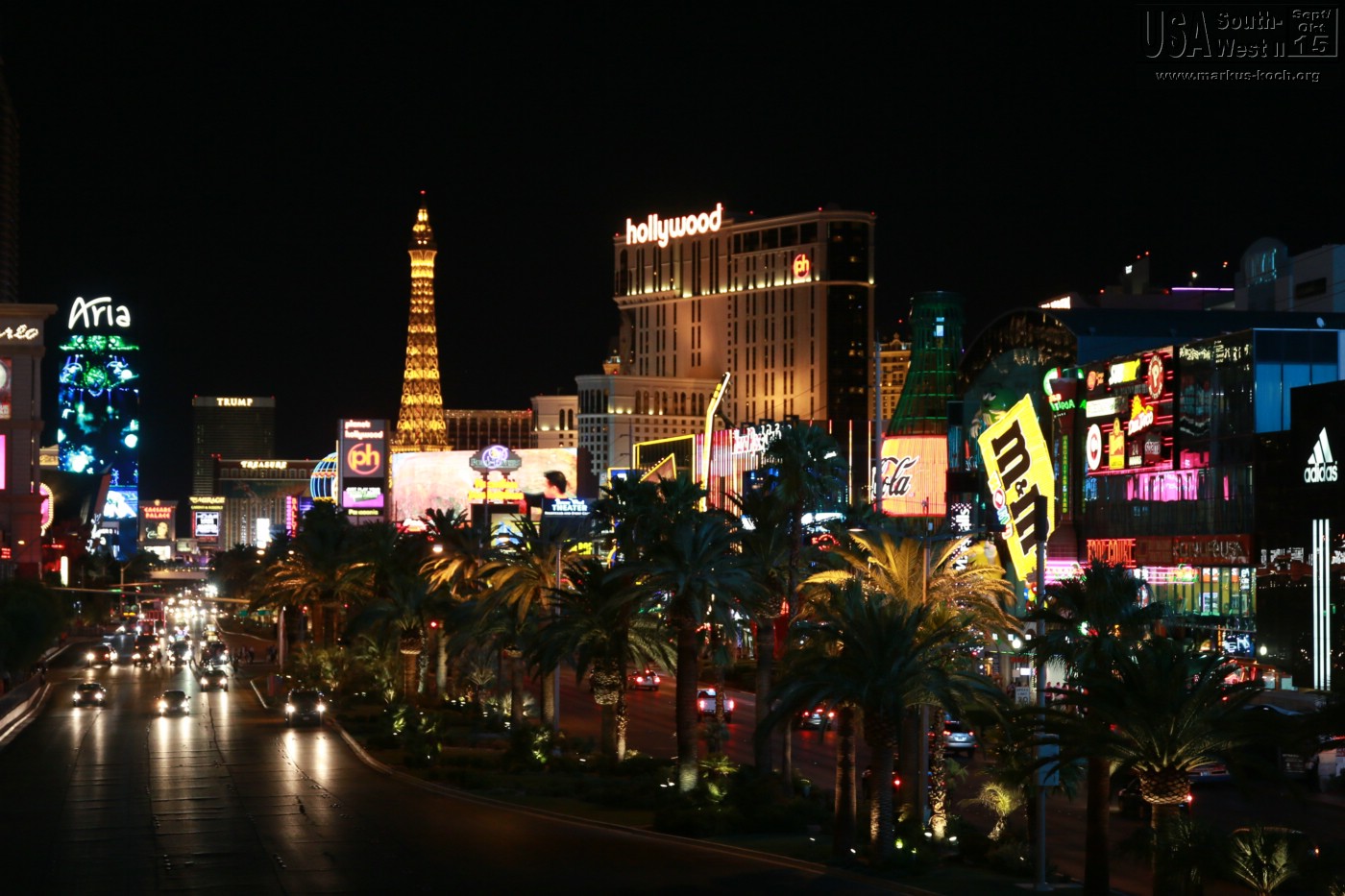 Als das RV stand sind wir ausgeruht gegen 19 Uhr an den The Strip um mit einem DEUCE Bus ($8/Tag) zum oberen Ende zu kommen. Die Buslinie fährt den ganzen Tag alle 15 min den Strip hoch und runter.