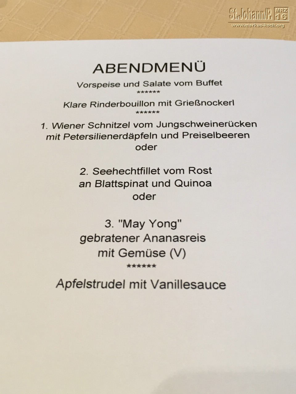 Nach dem Check-In gab es – wie die Tage drauf auch – ein leckeres 4 Gänge Menü (war alles im Preis inbegriffen). Am Abend erkundeten wir noch den Wellnessbereich (Außenbecken, Sauna).
