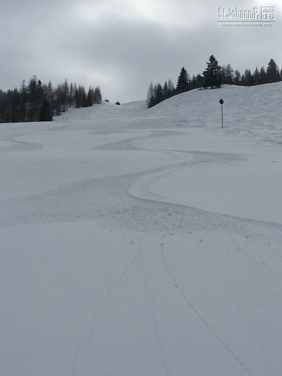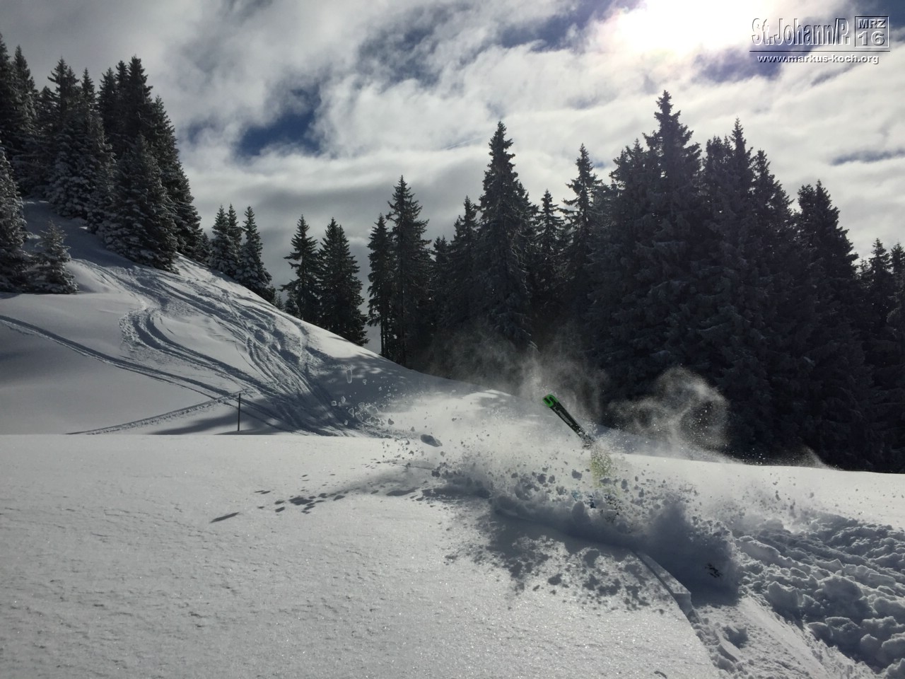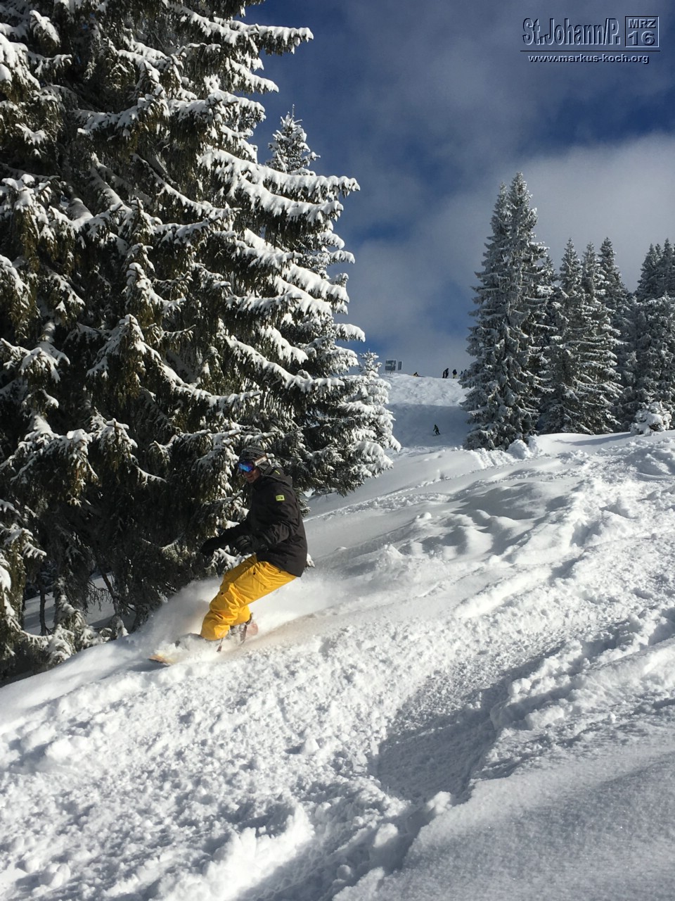 Der letzte Tag sollte wieder am Alpendorf/Wagrainberg sein. Über Nacht gab es 10 cm Powder, welcher gleich auf der Piste von Freitag ausgenutzt wurde.