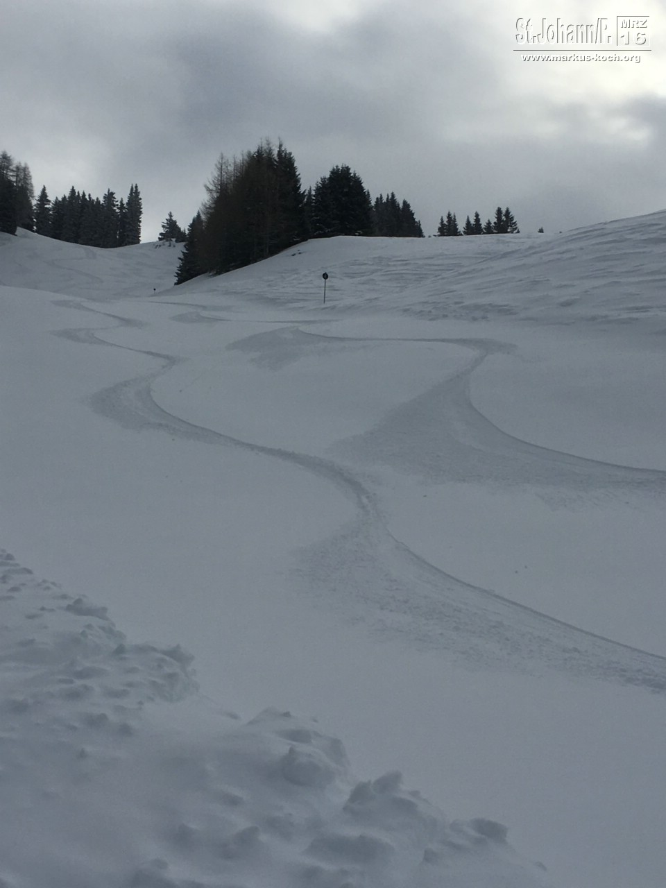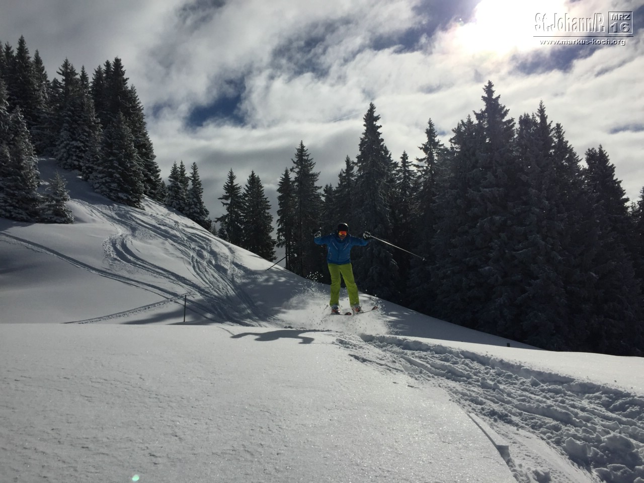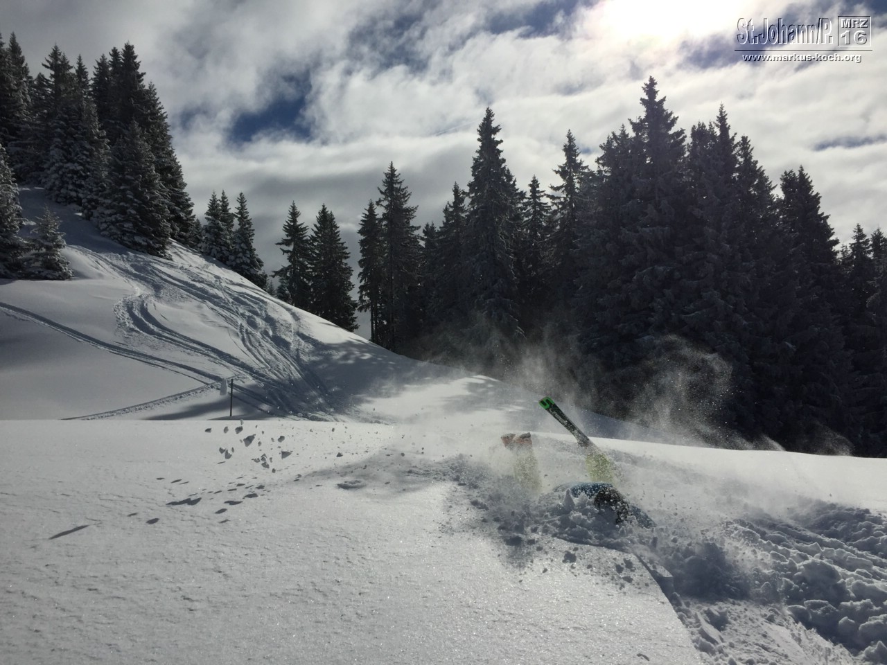 Der letzte Tag sollte wieder am Alpendorf/Wagrainberg sein. Über Nacht gab es 10 cm Powder, welcher gleich auf der Piste von Freitag ausgenutzt wurde.