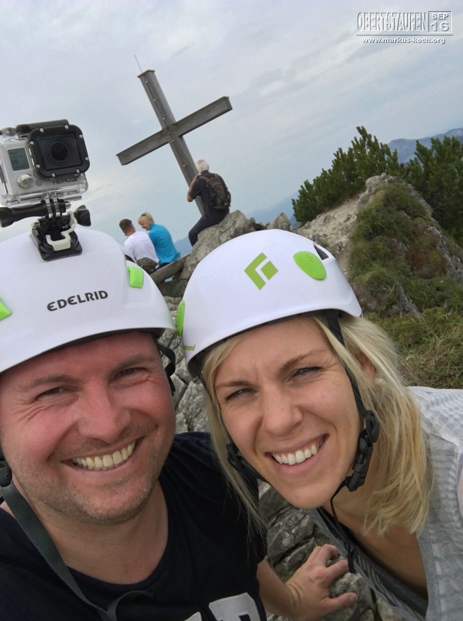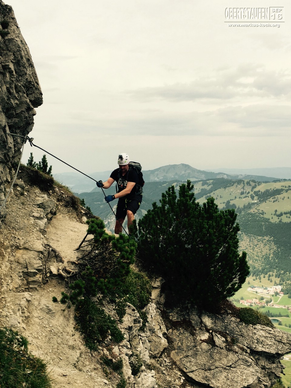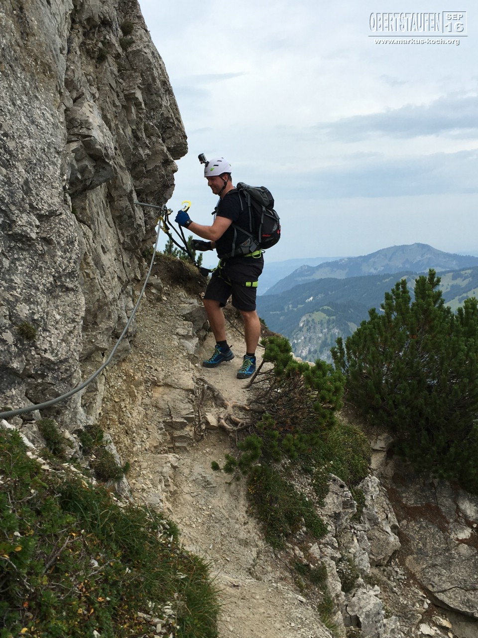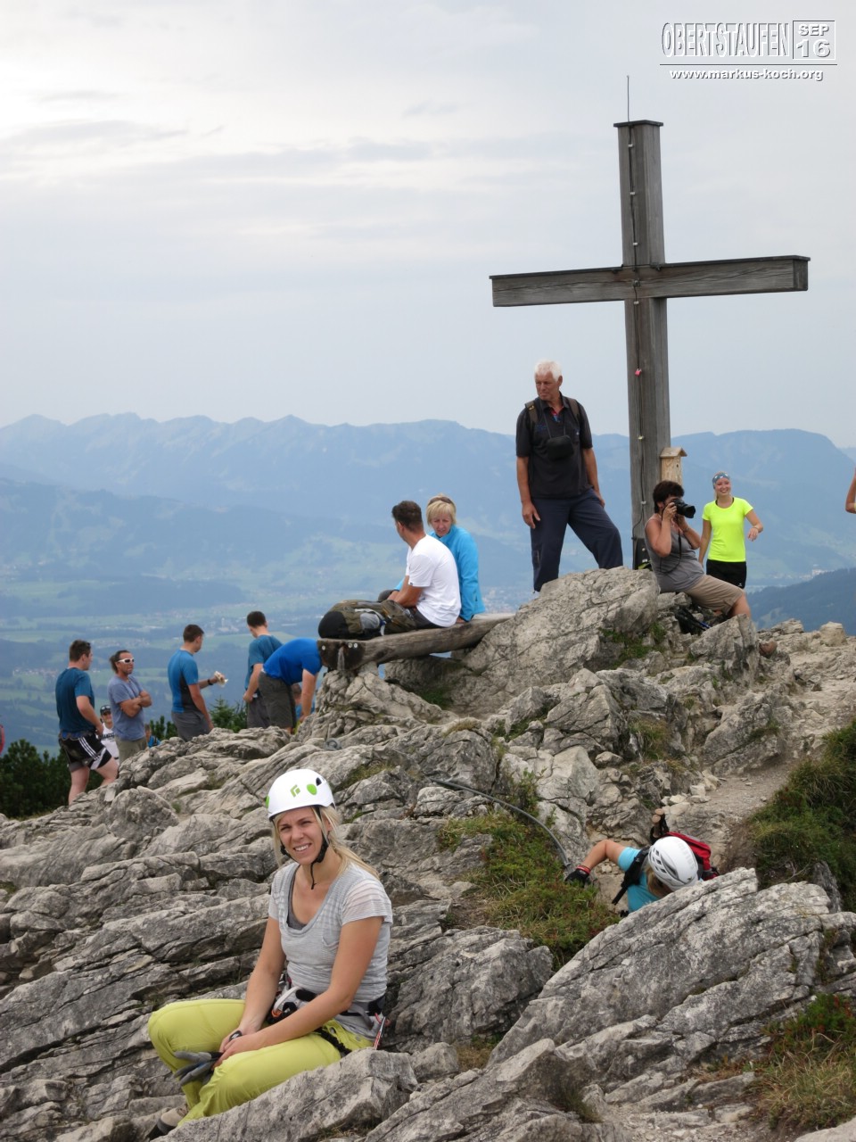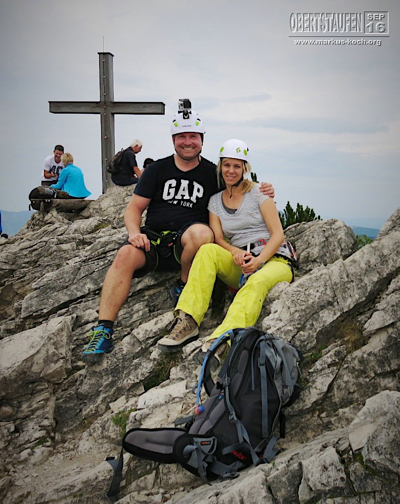 Marie & Ich hingegen sind am Morgen nach Oberjoch gefahren, um dort den Salewa Klettersteig Teil 1 zu machen. Zunächst fuhren wir mit der Iselerbahn nach oben. Von dort ging es ca. 25 Minuten bis zum Einstieg des Klettersteigs. Nach dem Anlegen des Klettergeschirrs kletterten wir bis zum Iseler Gipfel. Leider war eine Gruppe Engländer vor uns, was es etwas länger hat dauern lassen. Oben hätten wir noch den 2. Teil des Salewa Klettersteigs gemacht, aber das Wetter schien umzuschlagen und bei Regen sollte man keinen Klettersteig machen. So entschlossen wir uns nach unten zu laufen. Es fing dabei dann zu nieseln an. Richtige Entscheidung getroffen.