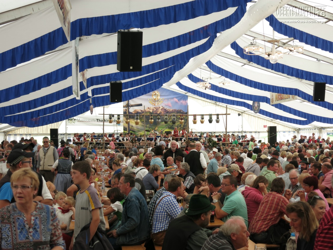 Wir hatten echt super Glück mit dem Wetter und so saßen wir vor dem großen Festzelt am Ende des Kuh-Sammelplatzes im Sonnenschein, tranken Radler-Maß und aßen Weißwürste.