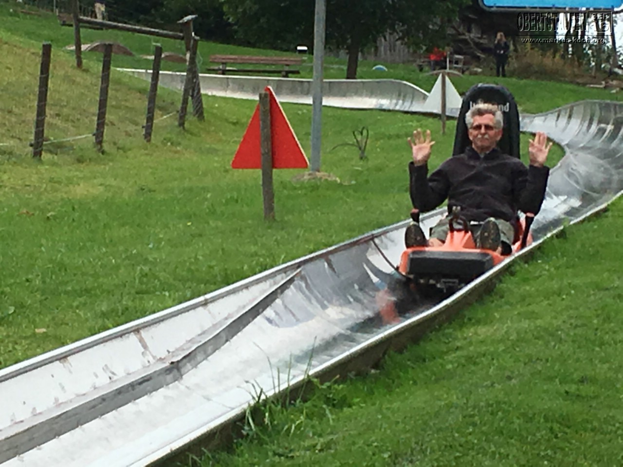 Kaum sind wir aufgebrochen, zogen richtig dunkle Wolken auf, aber es regnete nicht. Auf dem Heimweg war die „Hündle-Bahn“, mit der wir auf den Berg hoch sind und noch etwas spazieren liefen. Unten konnten wir dann noch – weil wir die Oberstaufen-Plus Karte hatten – auch umsonst eine Rodelbahn fahren.