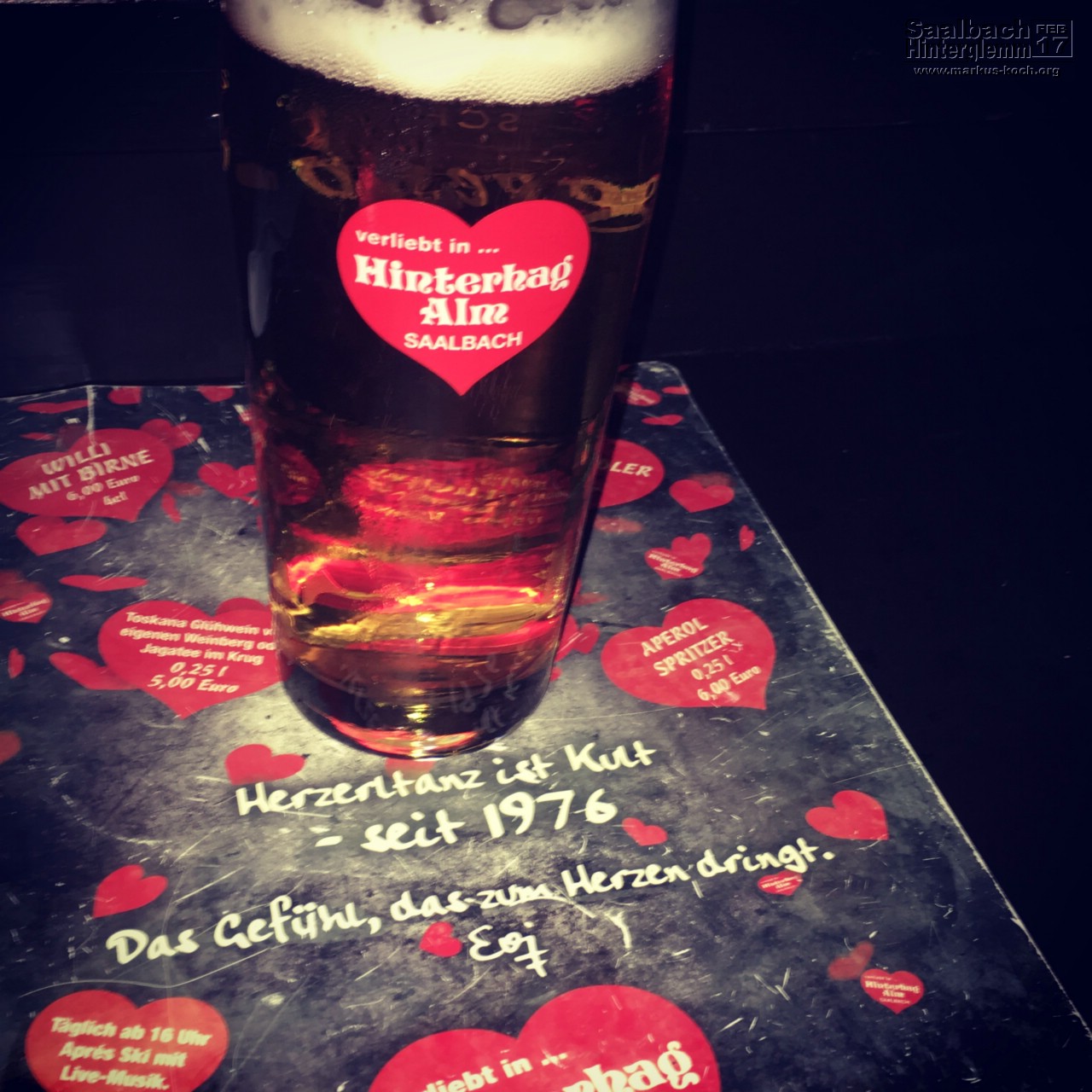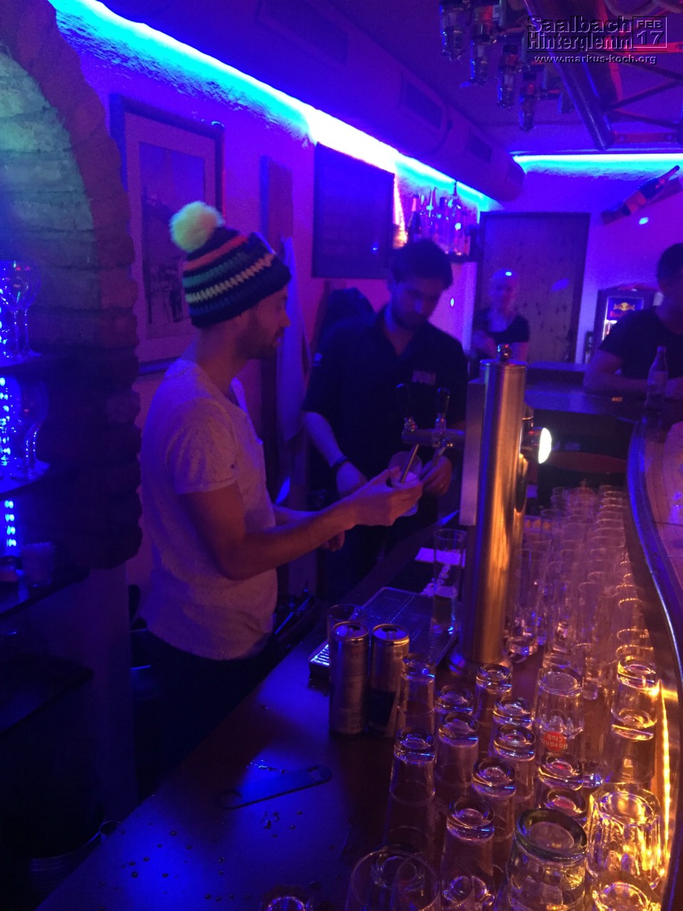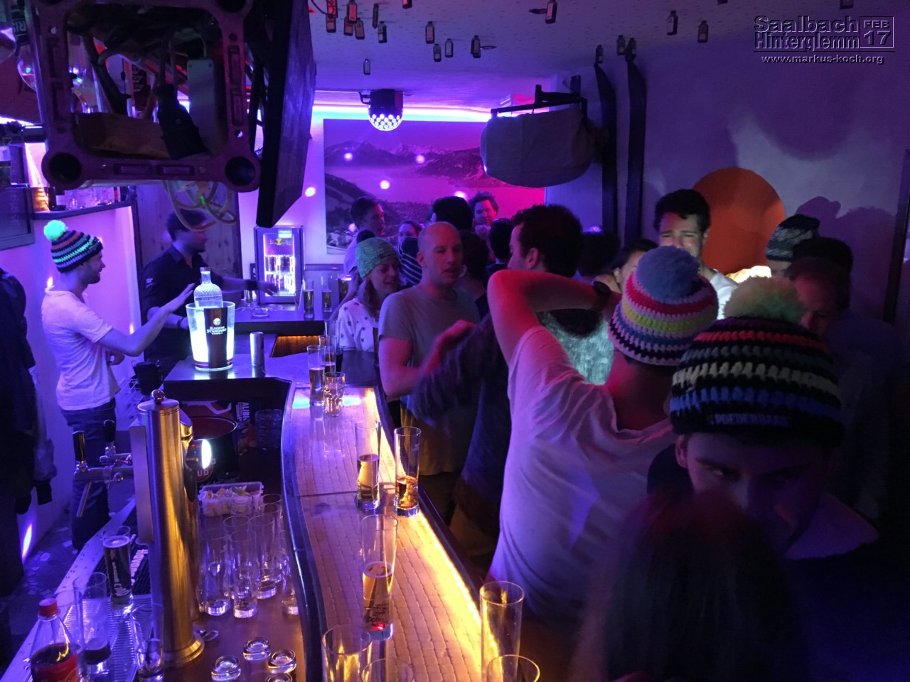 Nach dem Abendessen sind wir nochmal nach Saalbach gelaufen, waren im Hotel Post in der (leeren) Lounge ein Bier trinken, danach noch auf ein Getränk in der Alibi Bar.