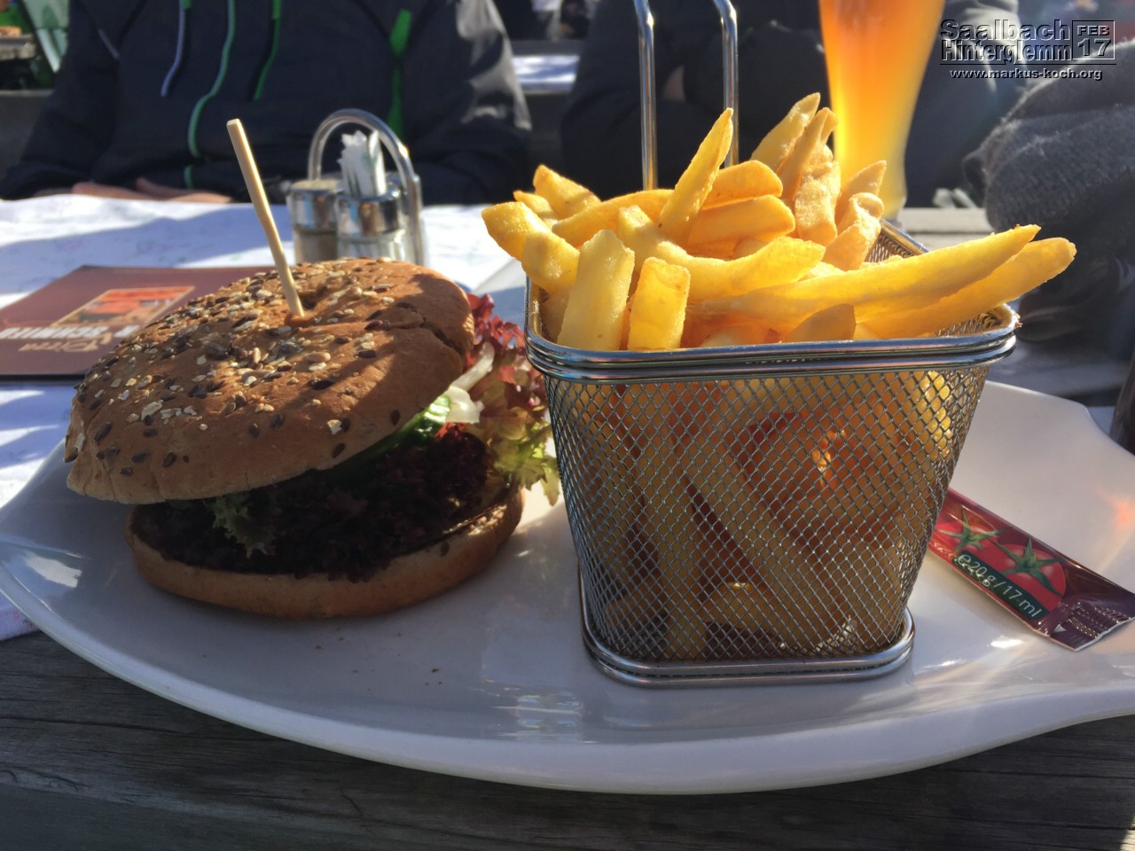 Als Jause wählten wir die eva Alm in der Fußgängerzone Saalbach.
