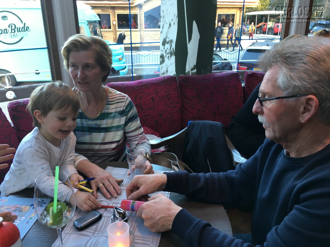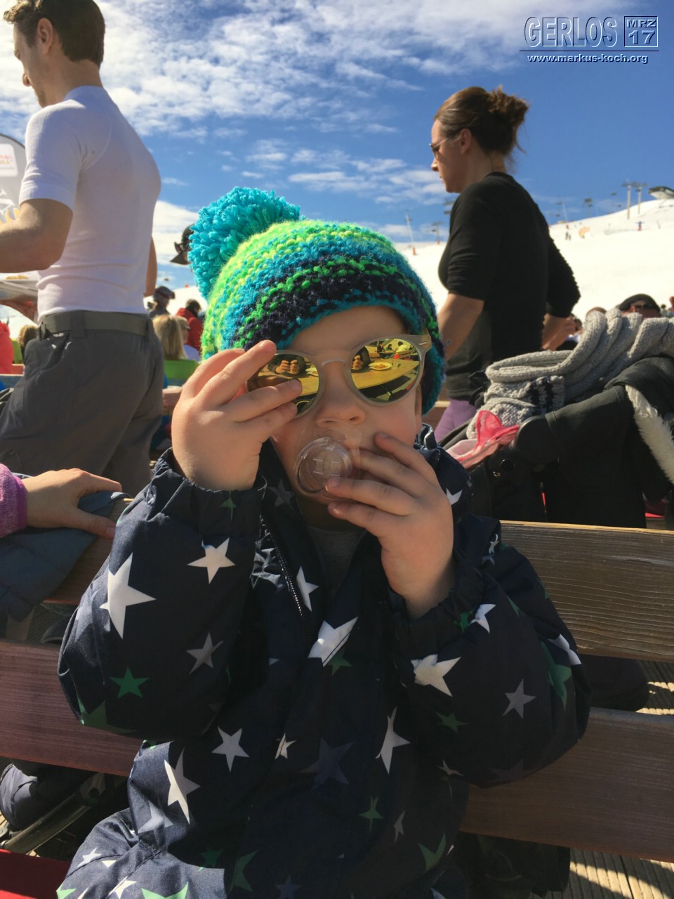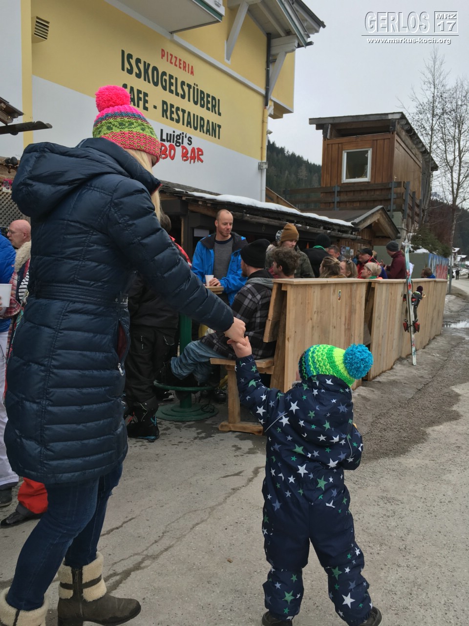 Danach konnte Luca etwas vom Apres-Ski Feeling an Luigis Turbobar draußen mitbekommen. Er hat wild getanzt 🙂