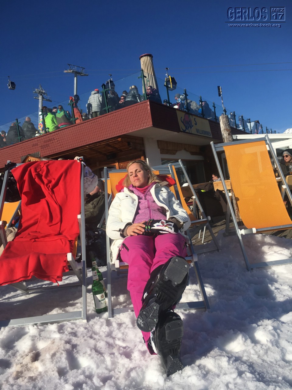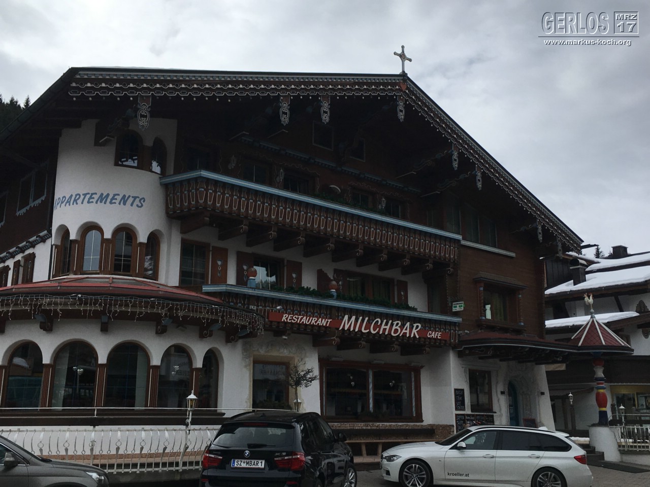 Gemütlich trafen wir am Nachmittag an und räumten das Auto aus. Danach schlenderten wir bei absolut tollem und warmem Wetter der Hauptstraße Gerlos entlang und tranken Kaffee in der Milchbar. Danach noch ein Bier am Chi-Chi (Apres-Ski-Location), bevor wir gleich noch bei Luigi zu Abend gegessen haben.