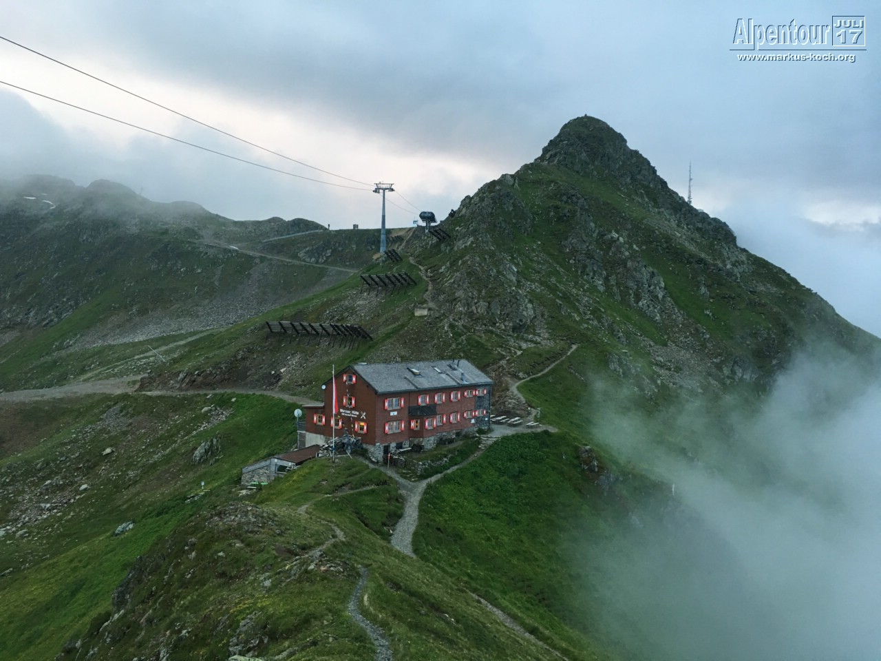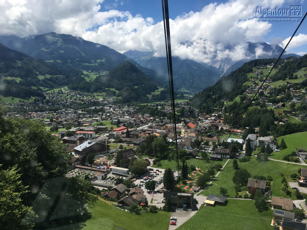 Nachdem wir Luca zur Omi Gudrun brachten fuhren wir nach Schruns im Montafon. Durch viel Verkehr kamen wir später an als ursprünglich geplant. Als wir mit der Bergbahn & Sessellift am Ausgangspunkt für unseren Klettersteig Hochjoch waren, mussten wir feststellen, dass der Klettersteig wohl doch zu lange dauert. Die hochziehenden Wolken waren uns auch nicht ganz geheuer, nicht dass es regnen oder gar gewittern würde. (Anmerkung: Klettersteig bei Regen ist sehr unschön und bei Gewitter ein NO GO).