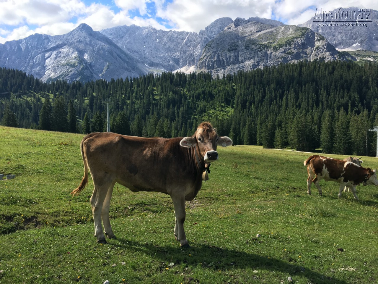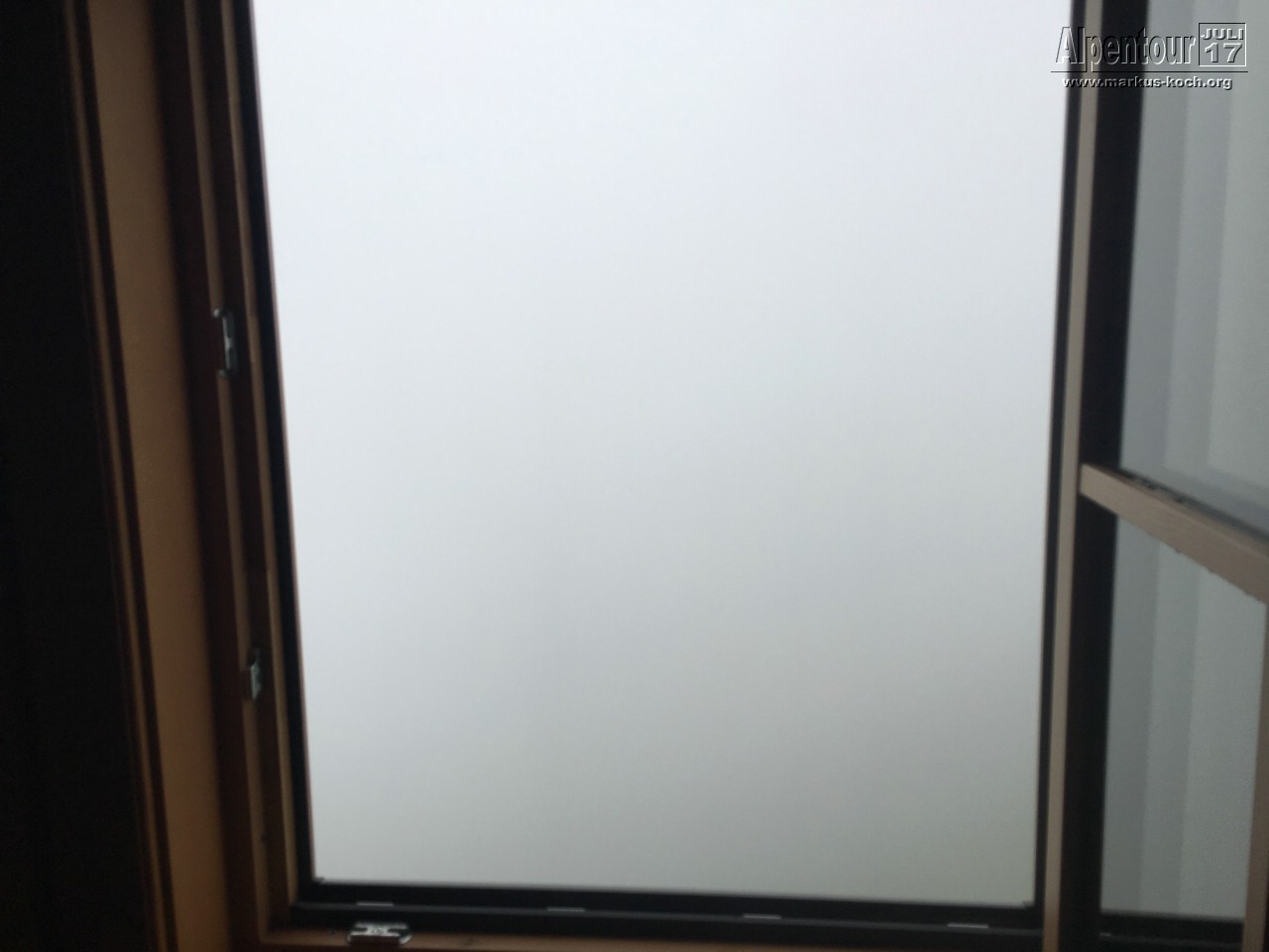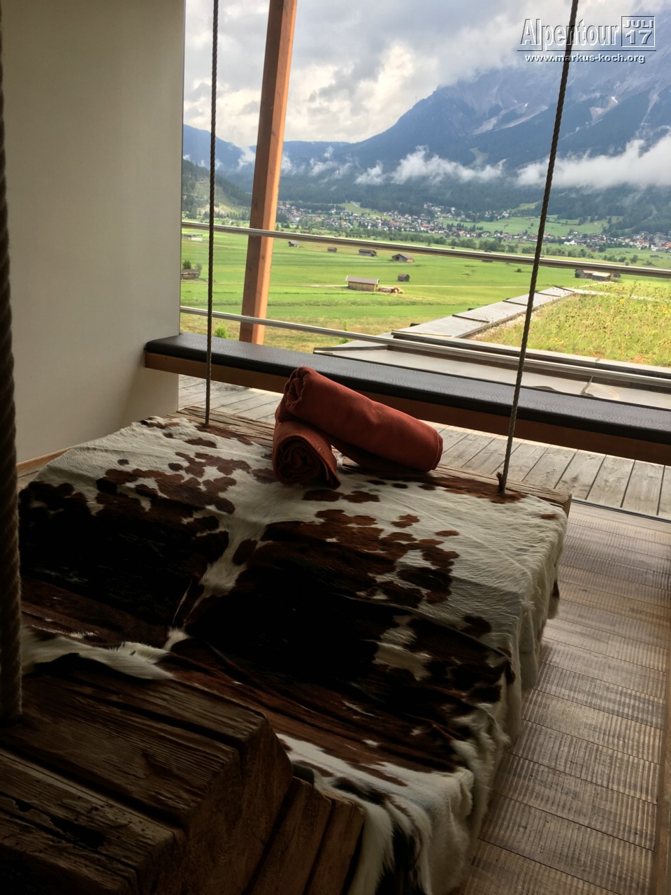 Noch im Nebel verhüllt war die Zugspitze, als wir aufwachten. Bis nach dem Frühstück war Deutschlands höchster Gipfel dann komplett sichtbar. Ein sehr schöner Anblick von der österreichischen Seite!