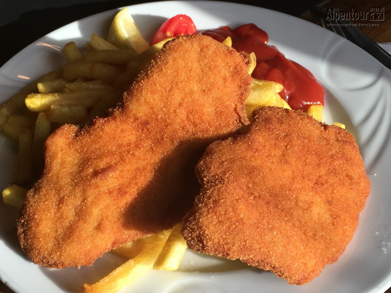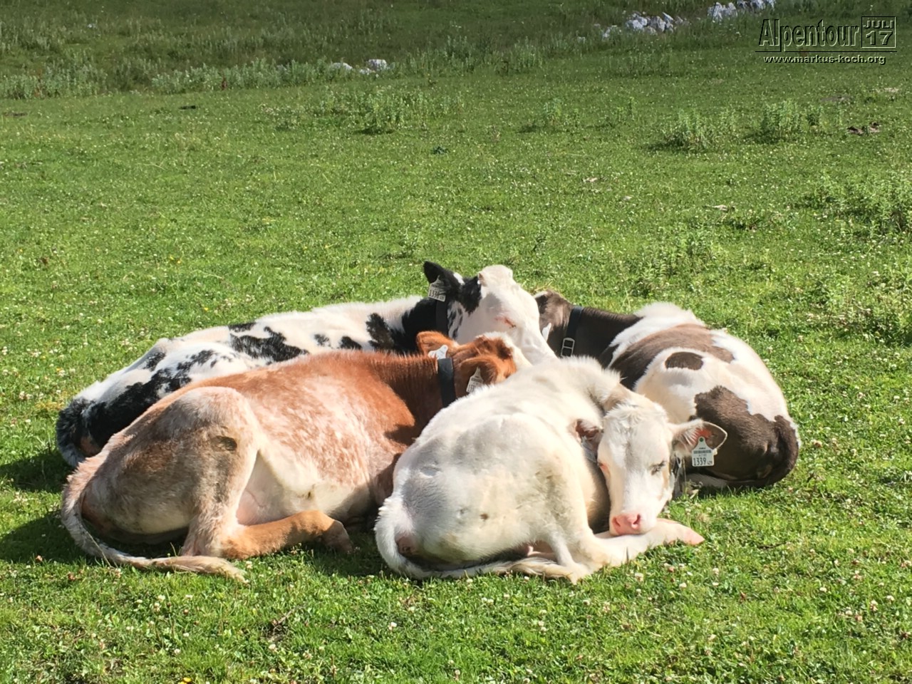 So beschlossen wir einen anderen dort vorhanden kleinen Klettersteig (Kälbersee) zu absolvieren. Nach 2-3 ganz nette Schwierigkeitsstufen waren wir nach 30 Minuten schon fertig. Danach liefen wir einen Wanderweg, auf dem wir mehrere Murmeltiere beobachten konnten, zur Wormser Hütte. Dies war auch schon unser Ziel. In der Hütte übernachteten wir nach einem leckeren Abendessen. Der normalerweise schöne Ausblick war uns durch sehr viele Wolken total verwehrt. Schade! Aber immerhin konnten wir noch ein paar Steinböcke sehen.