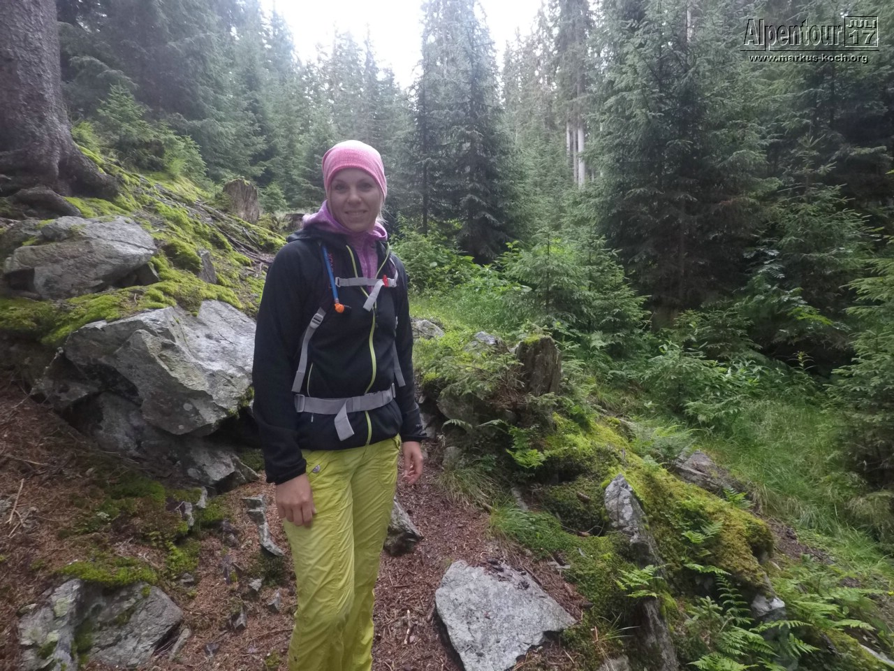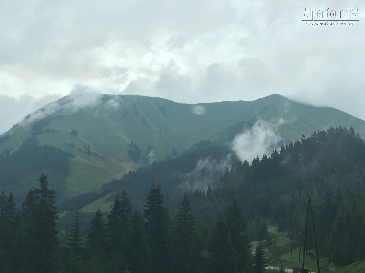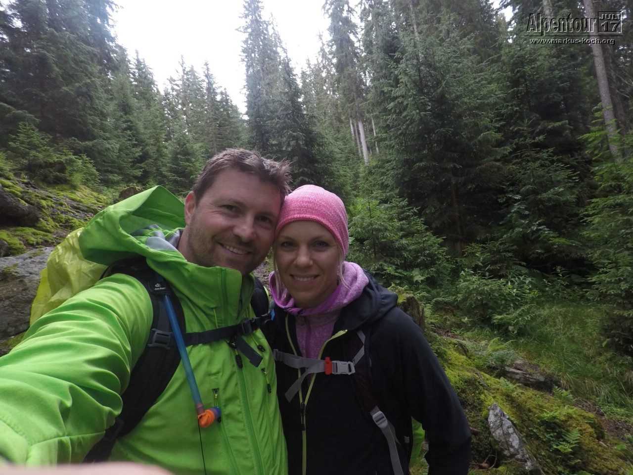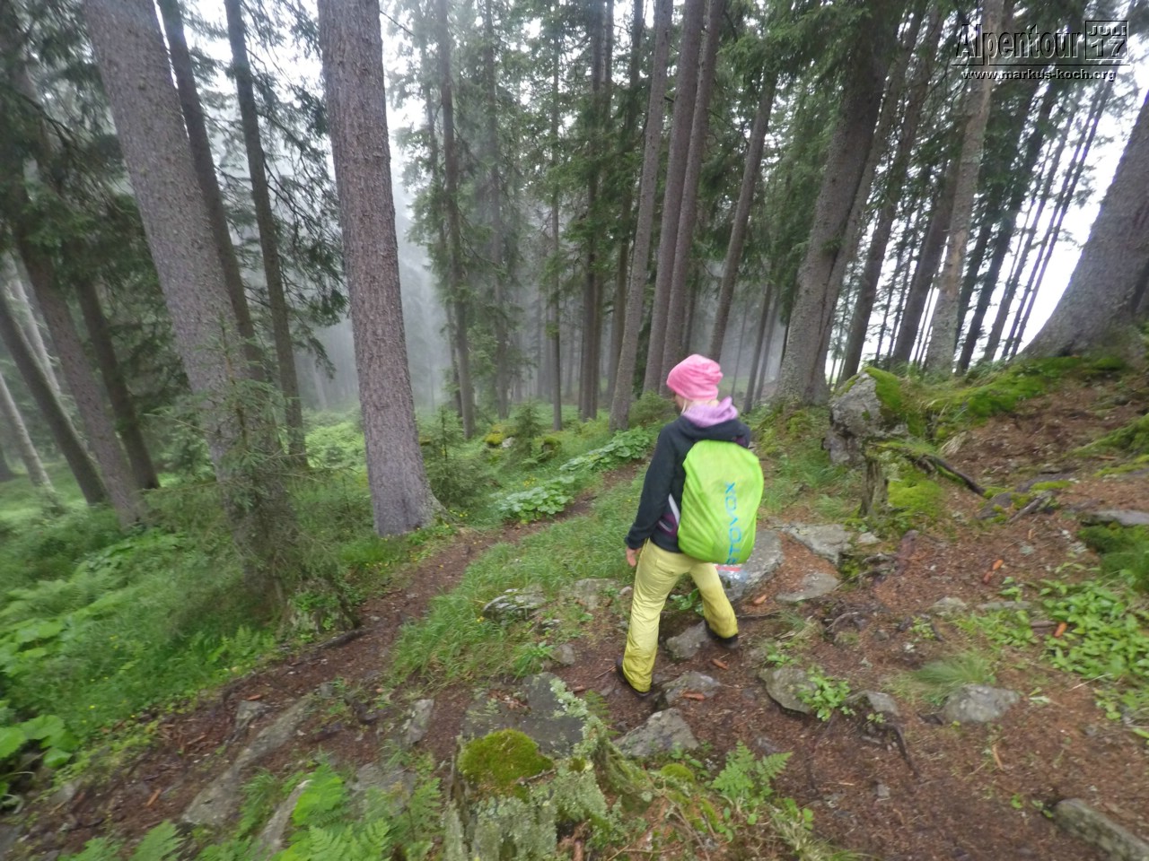 Regnerisch gestaltete sich der ganze Freitag. Wir trotzten dem Wetter und wanderden in den Wolken und bei Regen ins Tal. Teilweise hörte es auf zu regnen.