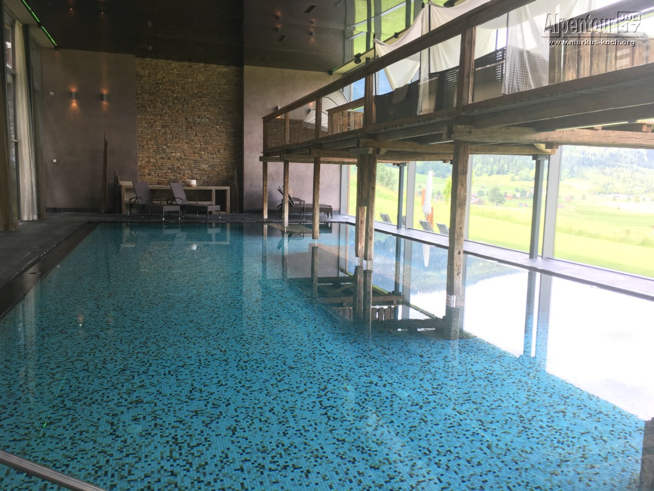 In Warth hatten wir für eine Nacht das Hotel Steffisalp gebucht. Klasse Wellnessbereich mit Pool & Sauna. Das 3-Gänge Menü am Abend versüßte uns diese Nacht.