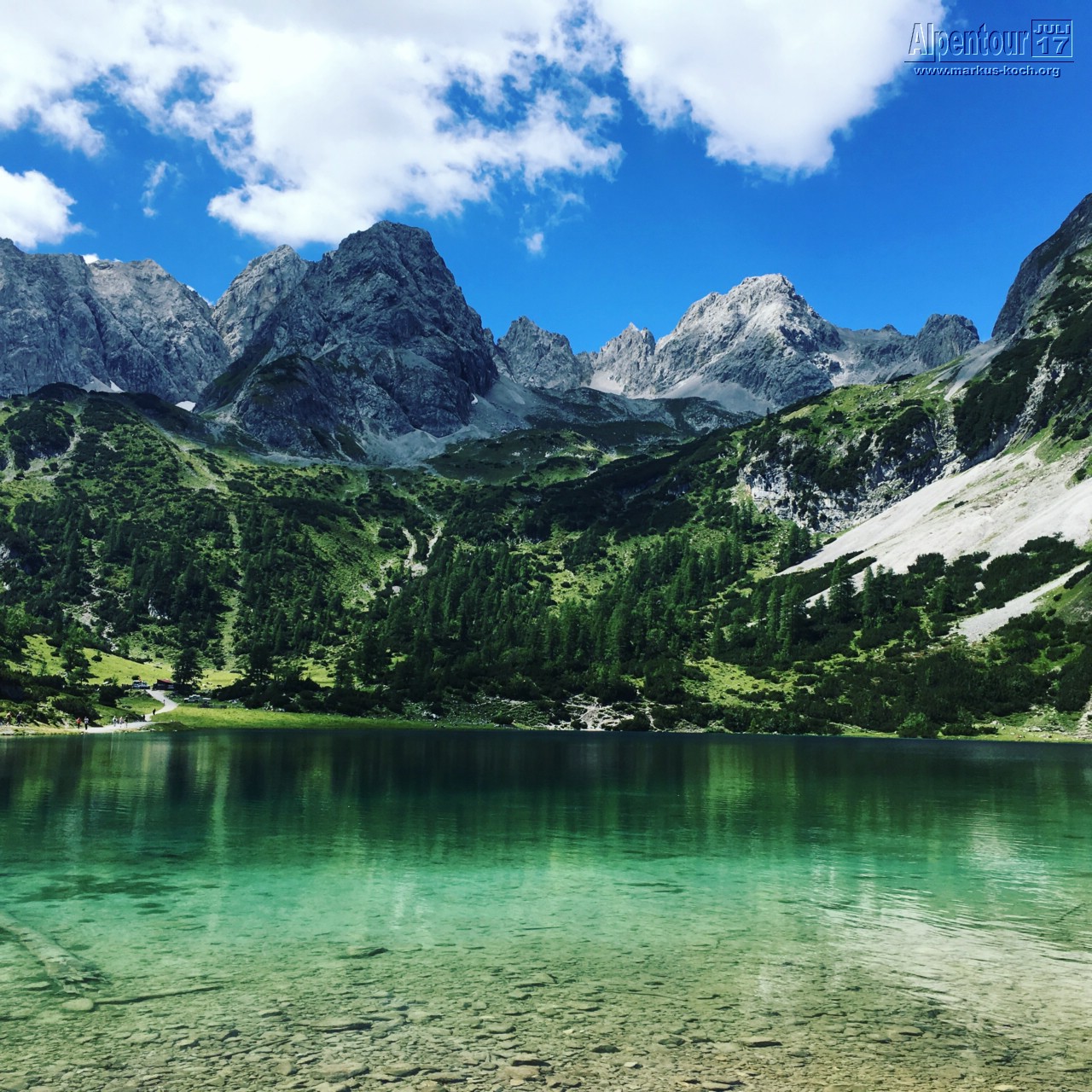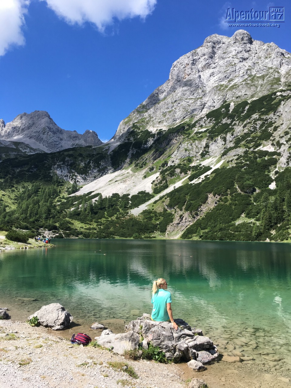 Das sonnige Wetter wollten wir zumindest noch für eine kleine Wanderung ausnutzen. Im nicht weit entfernten Ehrwald fuhren wir mit der Almbahn hinauf um zum wunderschönen Seebensee zu wandern (ca. 1:15 h). Glasklares kaltes Bergseewasser vor einer tollen Bergkulisse begeisterte uns ohne Ende!
