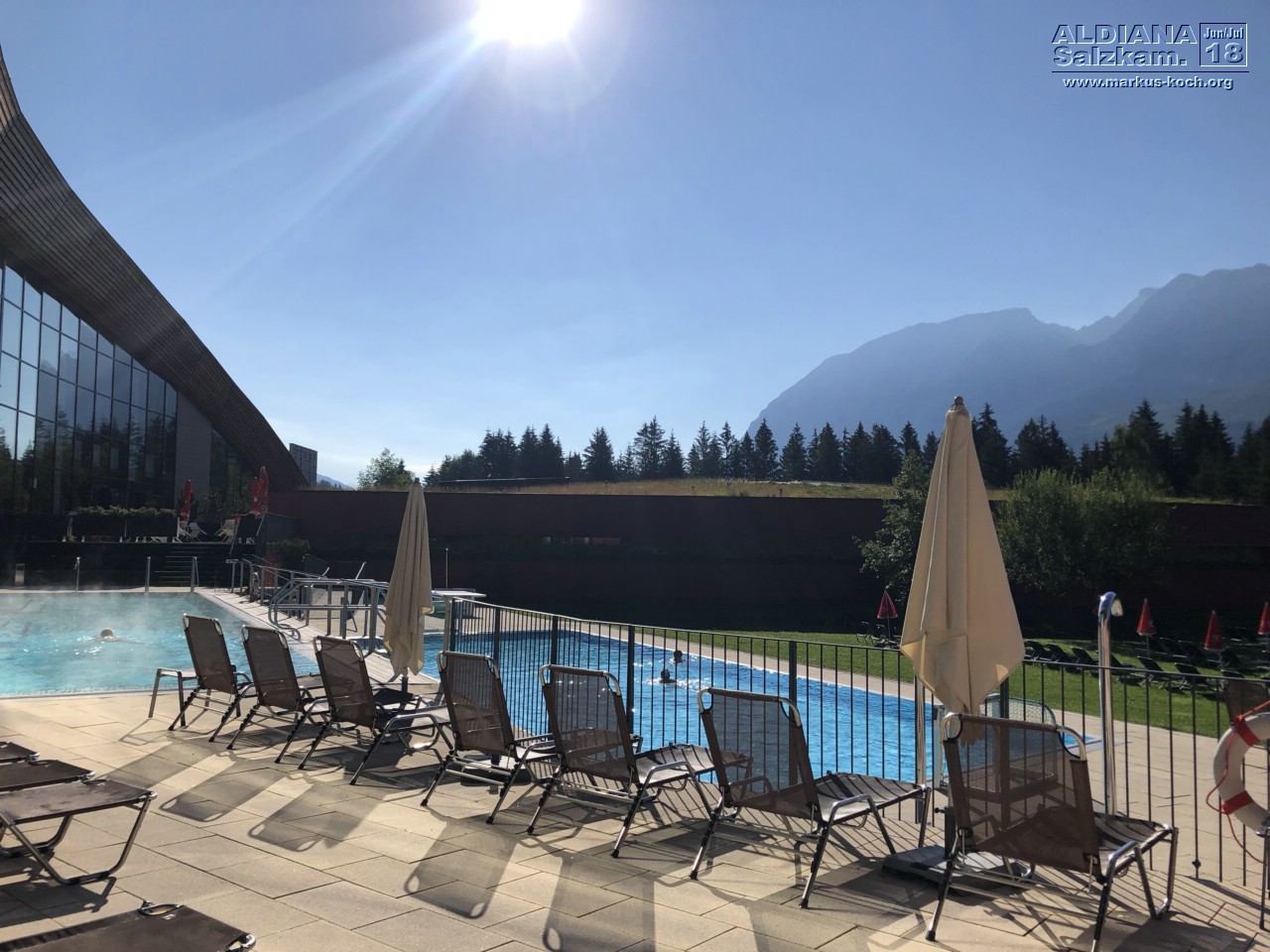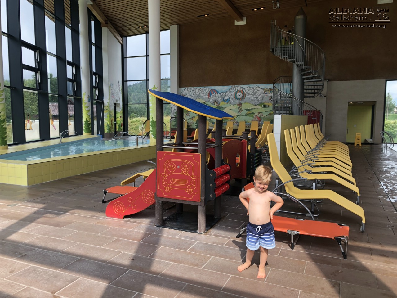 Während Marie auf der Alpenüberquerung von Oberstdorf nach Meran auf dem E5 wandert, packten Luca & ich unsere sieben Sachen und fuhren nach Bad Mitterndorf im Salzkammergut in Österreich. Aufgrund eines guten Angebots wählte ich den Club Aldiana Salzkammergut aus. Nicht zuletzt, da für Kinder etwas geboten wird und weil der Club einer eigenen (öffentlichen) Therme angeschlossen ist.