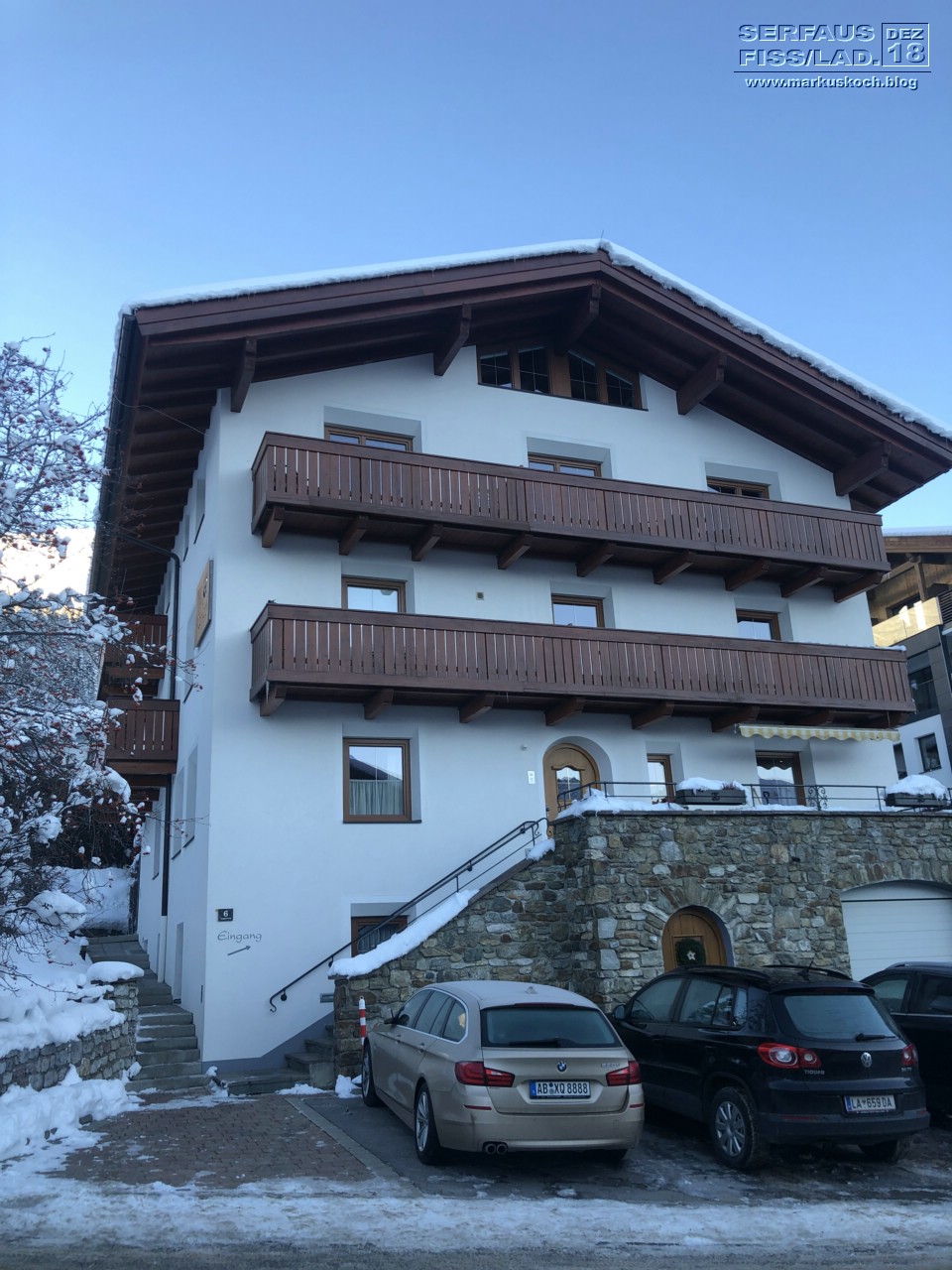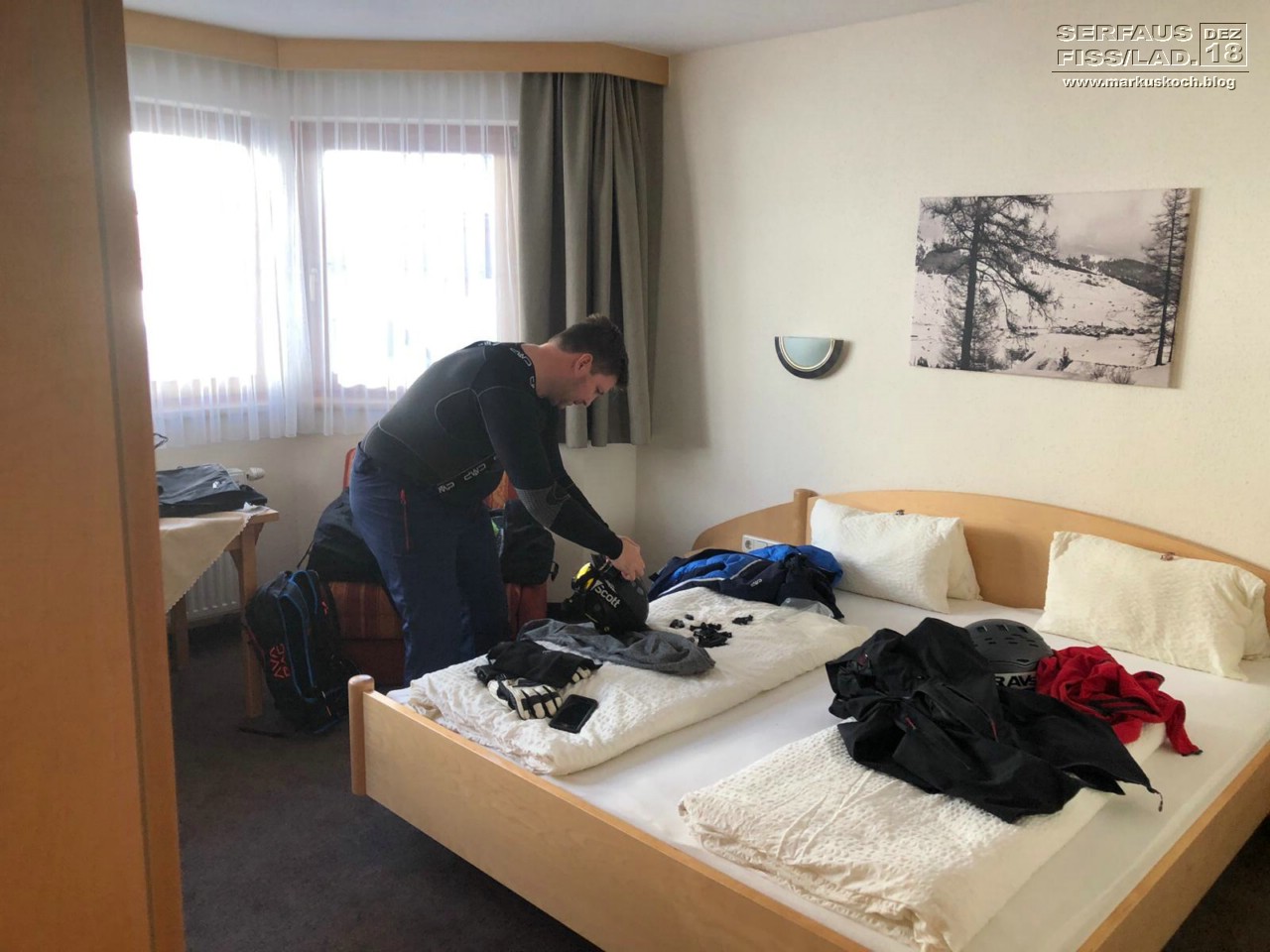 Mit Michael startete ich nach Fiss in unsere Unterkunft Apart Hotel Garni Kofler. Dort konnten wir sogar schon das Zimmer beziehen und uns bereit für den ersten Skitag der Saison machen. Das Haus Kofler war sehr gut gelegen, Frühstück war sehr lecker und die Zimmer völlig in Ordnung.