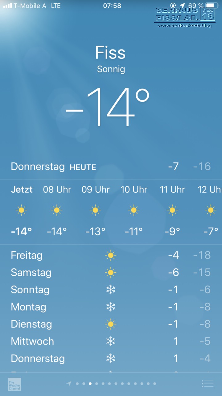 Do, 13.12.  – Fiss/Serfaus & Weiterreise – Wetter: Sonne, -15°C
