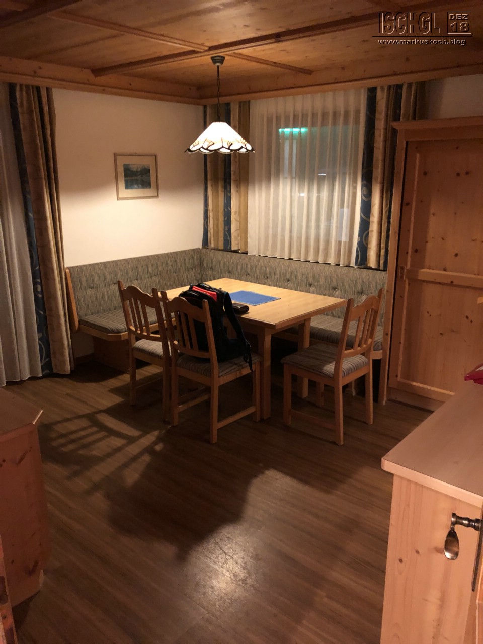 Meine Anreise habe ich ja schon im Blog unten drunter erzählt. Nachdem ich mit dem Bus in Ischgl ankam lief ich ca. 500 m mit dem ganzen Gepäck bis zu unserem Appartement Apart Furcletta mitten in Ischgl. Das Apt. war sehr gut gelegen. Das einzige was ich zu bemängeln habe, dass kein Fön da war. Das nächste Mal ist wieder einer dabei für Apt.-Urlaube 😉