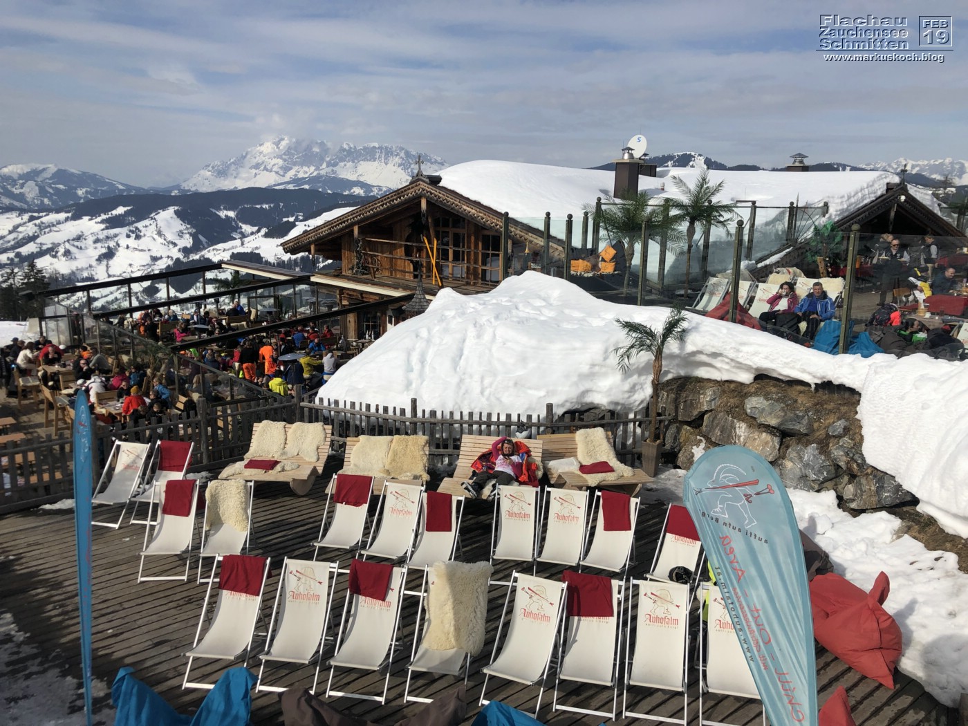 Ein wenig oberhalb unserer Unterkunft ist die Lisaalm, jeden Tag mit Live-DJ (housig 😊) – sozusagen unsere Apres-Ski-Alm. Aber super klasse: meine Ski-Stöcke wurden geklaut. Kurzerhand musste ich halt neue besorgen.