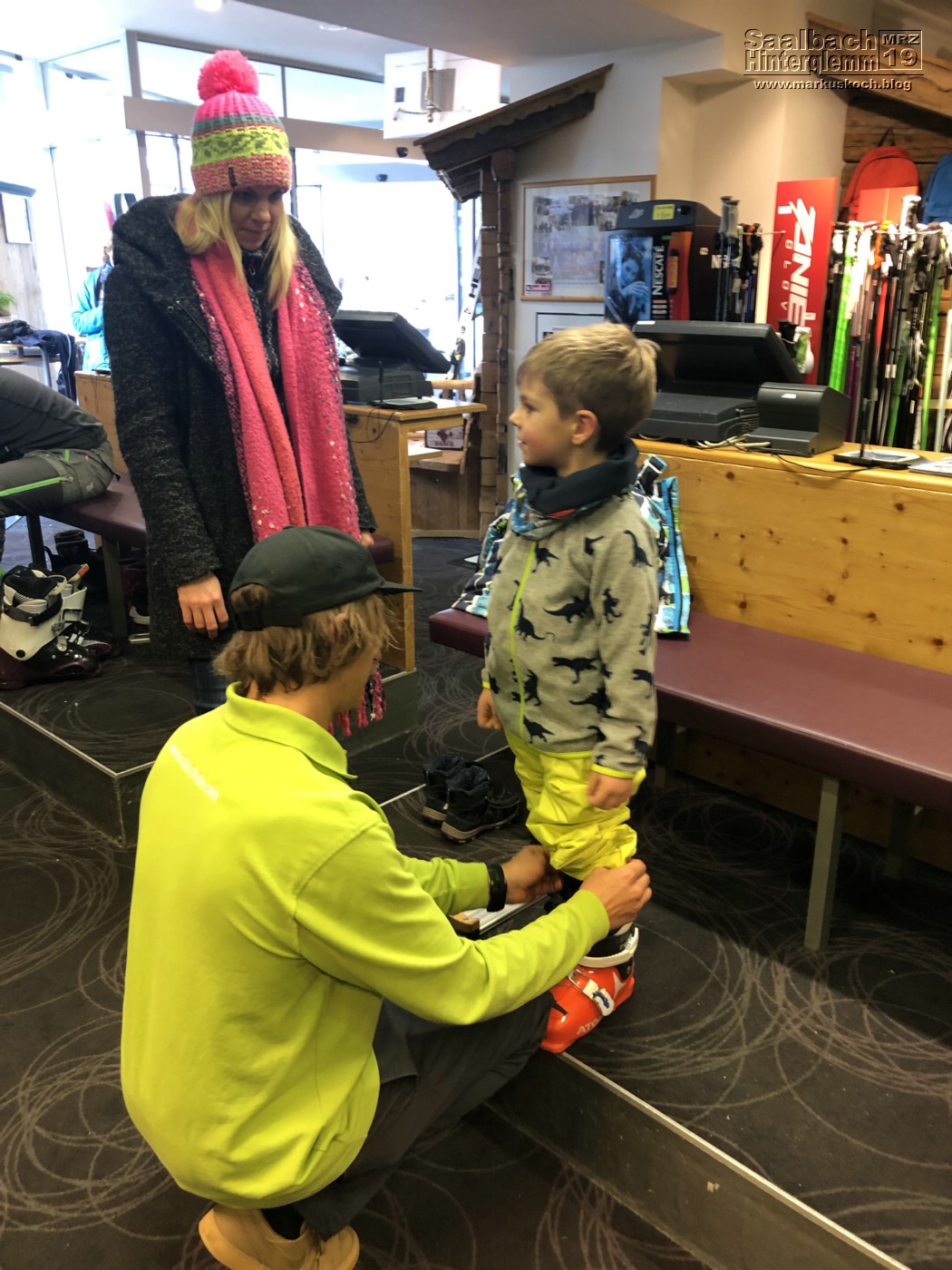 Wir besorgten noch die Skiausrüstung bei der Skischule für Luca und schlenderten noch ein wenig in Hinterglemm herum. Meistens hielten wir uns dann noch im Schwarzacher auf, der direkt dort ist (aber auch gesalzene Preise hatte – Bier 0,5l – 5,60 €).
