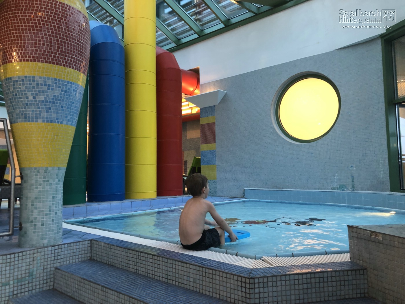 Als der Kurs rum war beschlossen wir in ein Schwimmbad zu gehen. Da konnten wir uns alle etwas schön aufwärmen und Luca uns zeigen, wie toll er schon schwimmen kann (ohne Hilfe).
