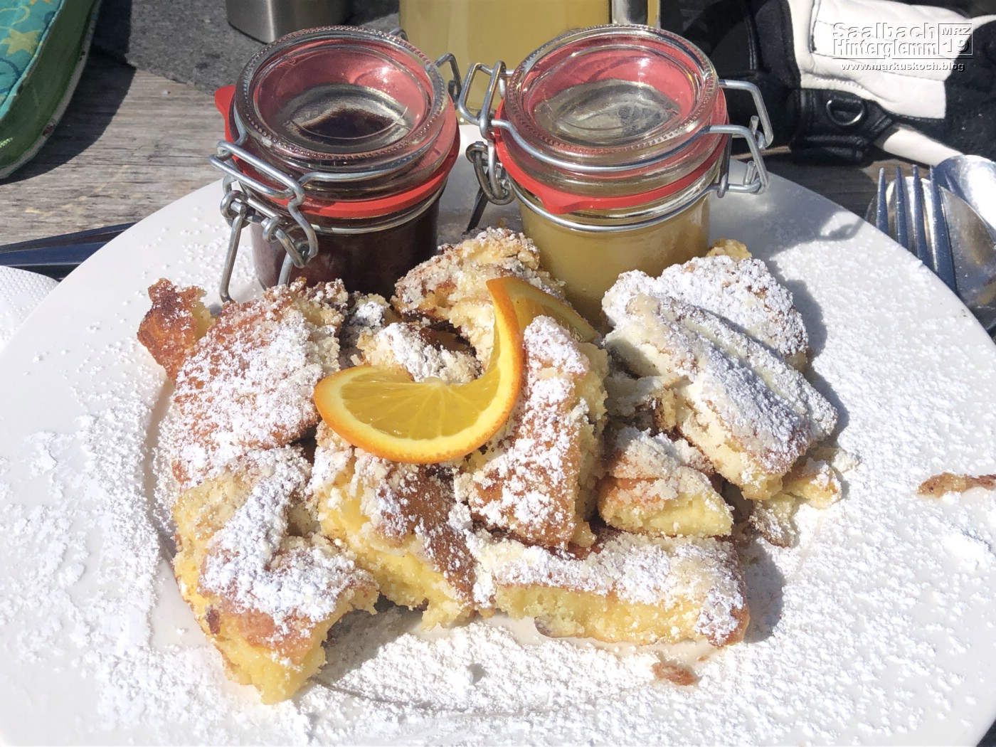 Wir trafen uns dann alle auf der Wieser-Alm zum Mittag (weltbester Kaiserschmarren). Danach ging es mit den Ski weiter zu Luis-Alm. Dort waren DJs & Co von den White Pearl Mountain Days. Zufällig trafen wir dort Christian Leimeister & Oliver Leister, die spontan an dem Wochenende auch in Zell am See waren.
