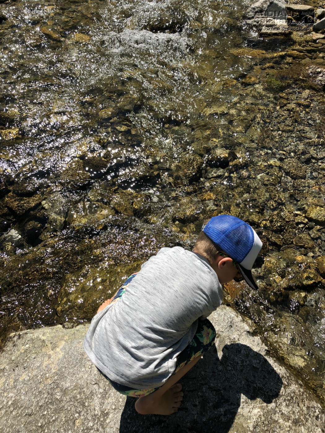 Wieder am Fahrrad kühlten wir die Füße noch in dem Bach, der vom Wasserfall daher rauschte.