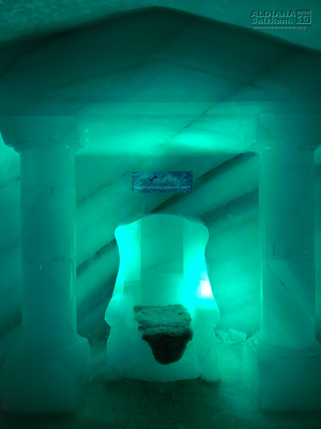 Dort oben war es herrlich luftig mit einem super Ausblick. Über eine Hängebrücke besichtigten wir unter dem Steinmassiv einen Eispalast mit der Ausstellung „Europa“ – aus Eis gefertigte Wahrzeichen, wie Berliner Mauer, Eifelturm oder Prater Riesenrad Wiens.