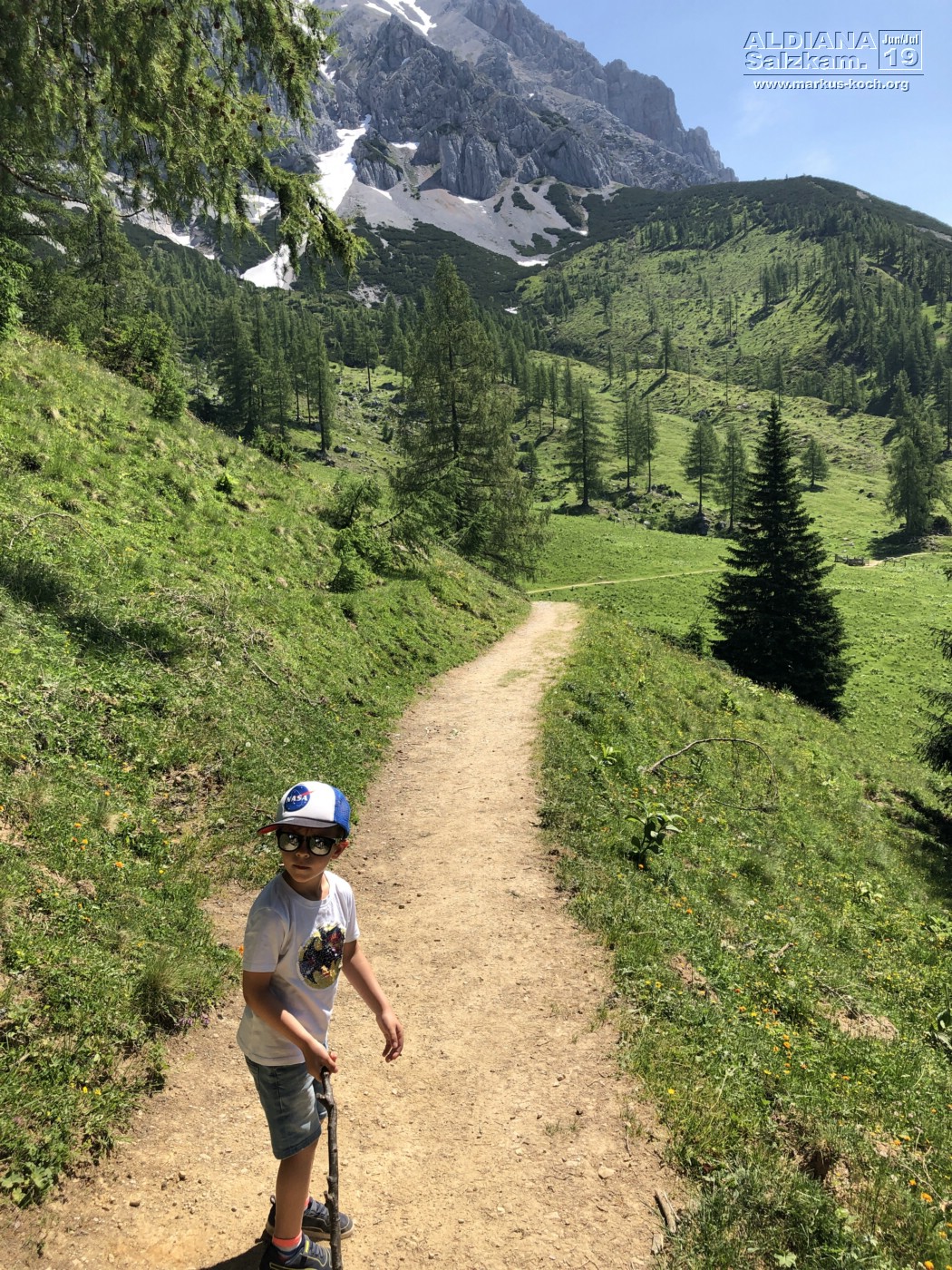 Während Mami Marie ihre 2. Etappe auf dem E5 von Bozen nach Trient wanderte, zog es Luca und mich auch wieder in die Alpen. Aufgrund des zunächst schlecht gemeldeten Wetters von MO bis FR am Zielort (Aldiana Salzkammergut), entschlossen wir uns bereits 2 Tage früher nach Österreich, genauer gesagt nach Schladming, zu fahren.