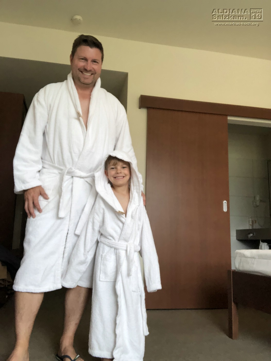 Da für heute das Wetter dann doch mal wirklich schlecht gemeldet war, gingen wir mit unseren Bademänteln durch den Keller zur angeschlossenen Grimming Therme (ist im Preis dabei, so oft & so lange man möchte). Dort konnten wir rutschen, schwimmen, springen und chillen.