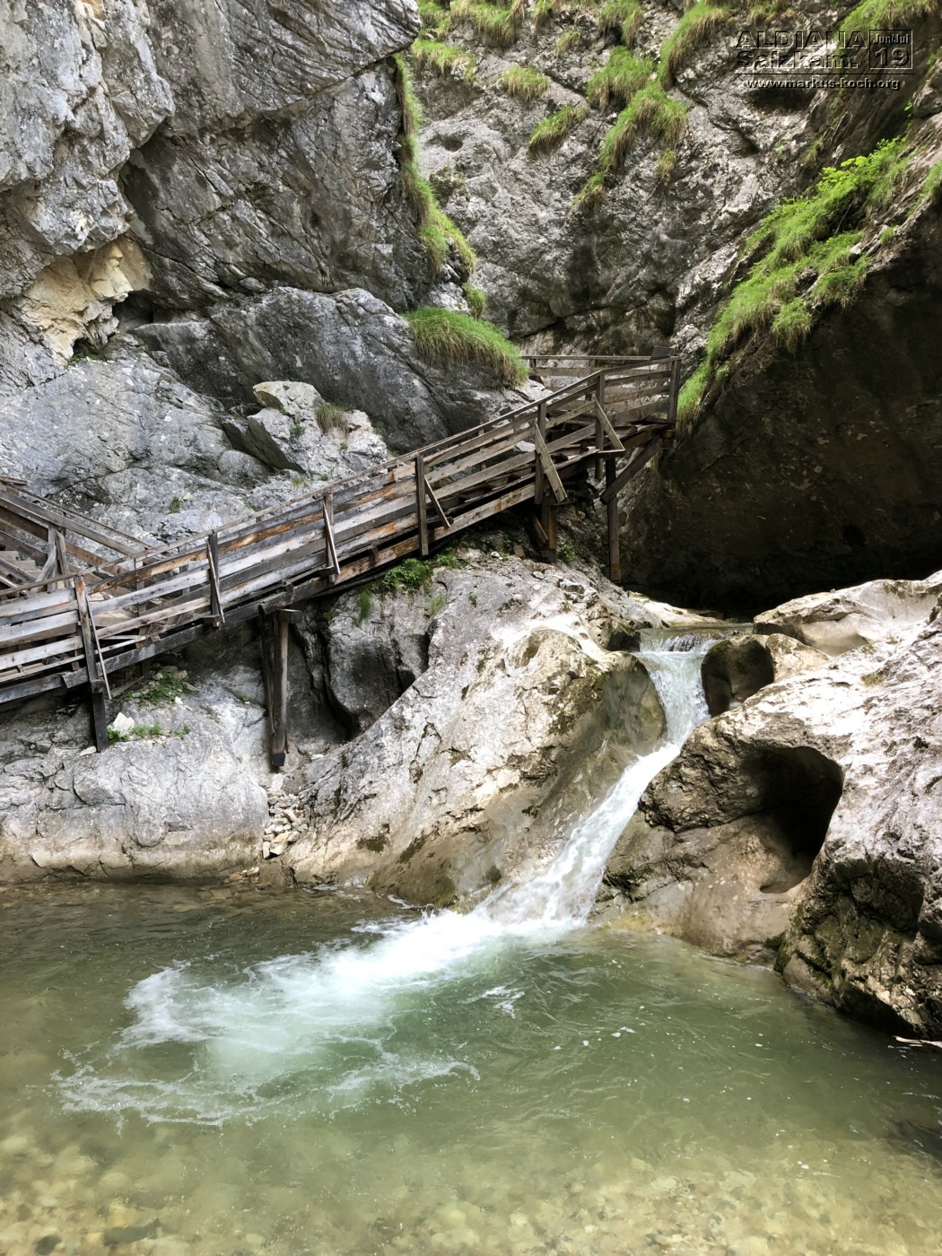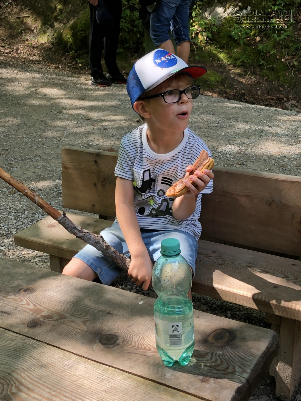 Gleich nach dem Frühstücksbuffet besuchten wir die Wörschachklamm (35 Min weg). Dort gingen wir die Klamm auf vielen Treppen hinauf. Danach wanderten wir über einen Rundweg zurück zum Parkplatz. Was man nicht gesehen hat, der Weg ging recht steil durch den Wald, was natürlich dazu führte, dass Luca irgendwann keinen Bock mehr hatte. Irgendwie haben wir es aber dann doch mit vielen Pausen geschafft zurückzukommen. Ein Umdrehen wäre nicht kürzer gewesen und die vielen Stufen durch die Klamm hinab nicht ungefährlich.