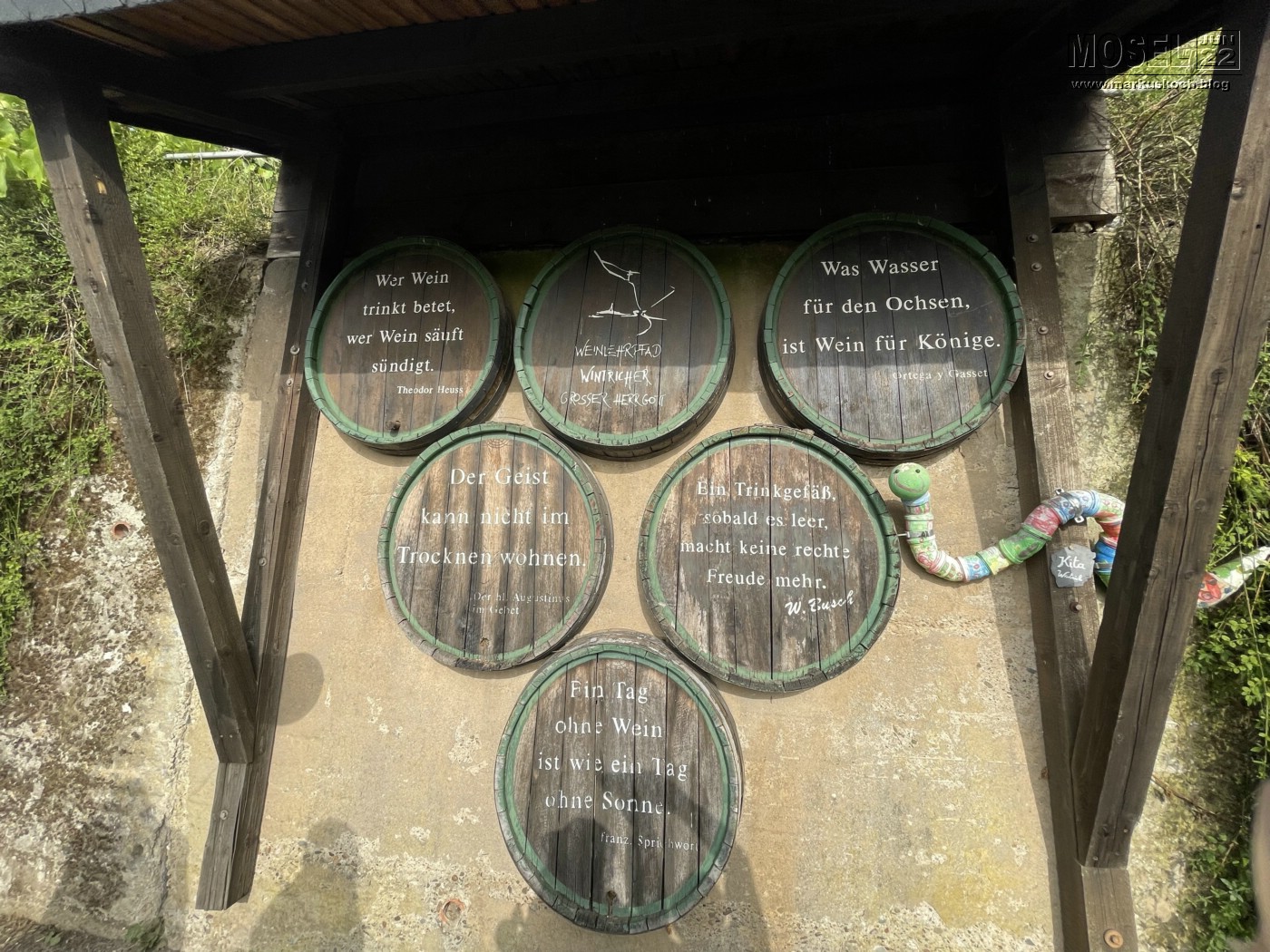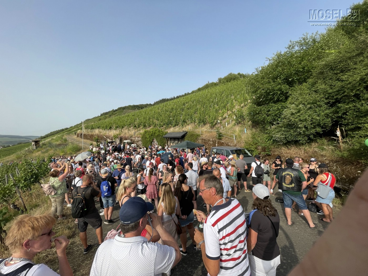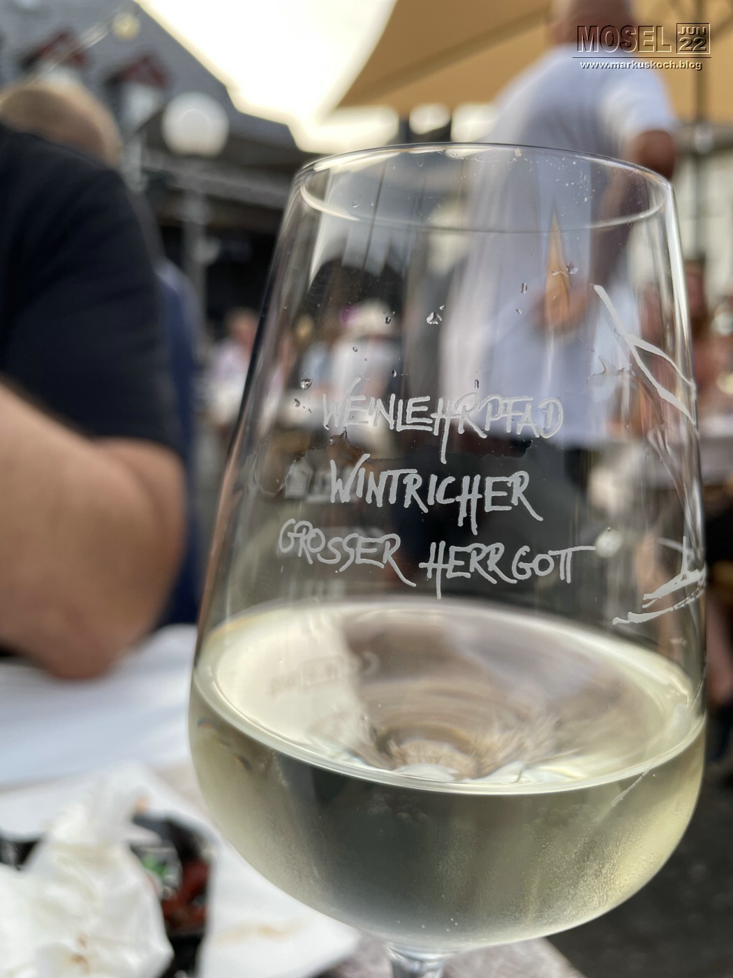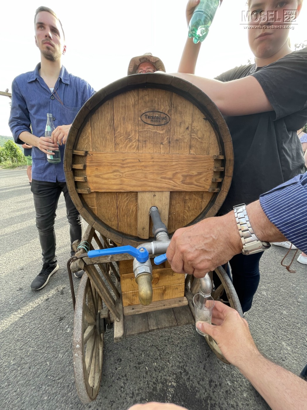 Am späten Nachmittag hieß es dann „Weinblütenwanderung … zum Herrgott hinauf“ in Wintrich. Einmal Wein bezahlt und mit dem Becher dann immer fleißig nachholen können.