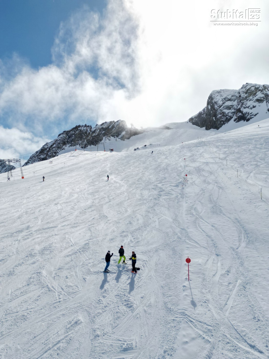 Der Schnee war nach etwas Neuschnee recht gut für diese warme Saison. Und die Pistenvielfalt am Gletscher auch noch 1A.