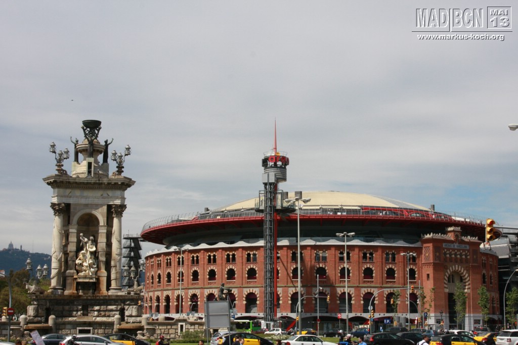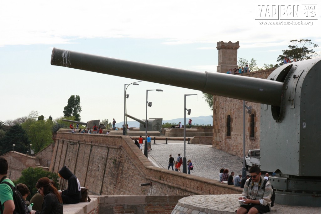 Das heutige Hauptziel sollte der Berg Montjuic sein. Angefangen haben wir am Placa d‘Espanya. An diesem Platz steht eine alte Stierkampfarena (Las Arenas) – jetzt nur noch als Shoppingcenter und Aussichtspunkt fungierend. Ein schöner Ausblick auf den Brunnen des Placas, den zwei 47 Meter hohen Türmen (ähneln dem Glockentrum des Markusdoms Venedigs) und auf das Palau Nacional (Nationalpalast). Dort liefen wir dann auch den Berg hinauf am Nationalpalast und dem Olympiagelände (1992) vorbei bis zur Seilbahn zum Castell de Montjuic auf dem höchsten Punkt des Bergs. Es war ein fantastischer Ausblick von da oben – die Stadt, der Hafen, der Flughafen, einfach alles von Barcelona! Genial – das ist auf jeden Fall ein Muss!