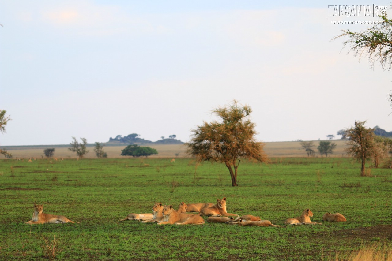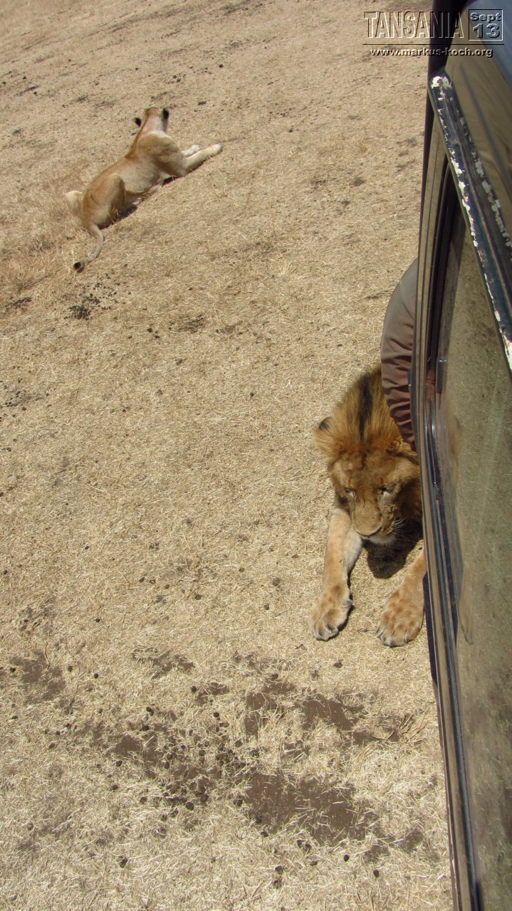 Angekommen in der Serengeti haben uns gleich 2 Löwen mit ihrer Löwin begrüßt. In der Serengeti machten wir eine Pirschfahrt bis in die Abendstunden. Schon Wahnsinn, was für unendliche Weiten dieser Nationalpark hat! Es ist unvorstellbar, wenn man nicht hier war! Interessant ist hier auch, dass wenn man sich umdreht einfach mal hier ne Giraffe steht oder dort mal eine Elefantenherde grast. Man kann es nicht in Worte fassen!