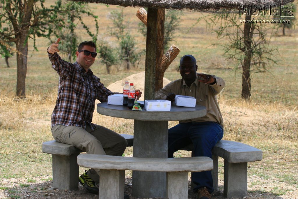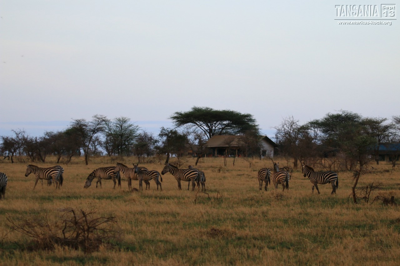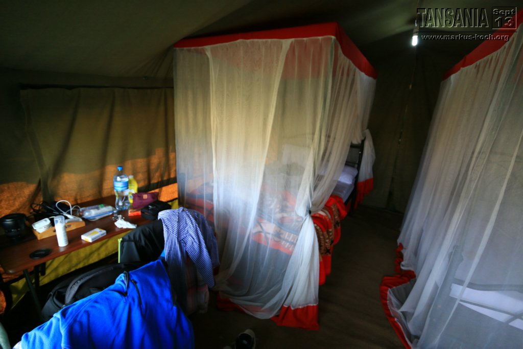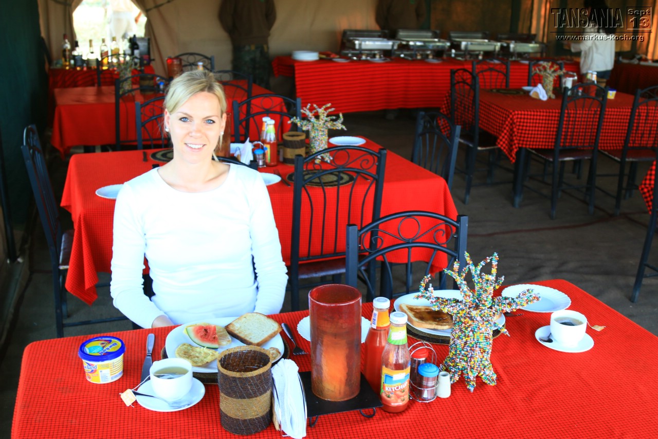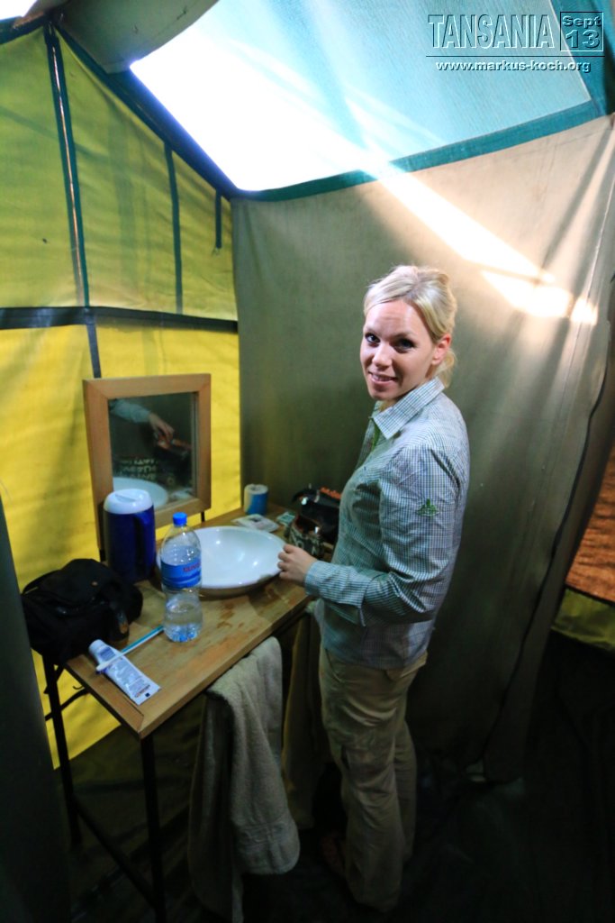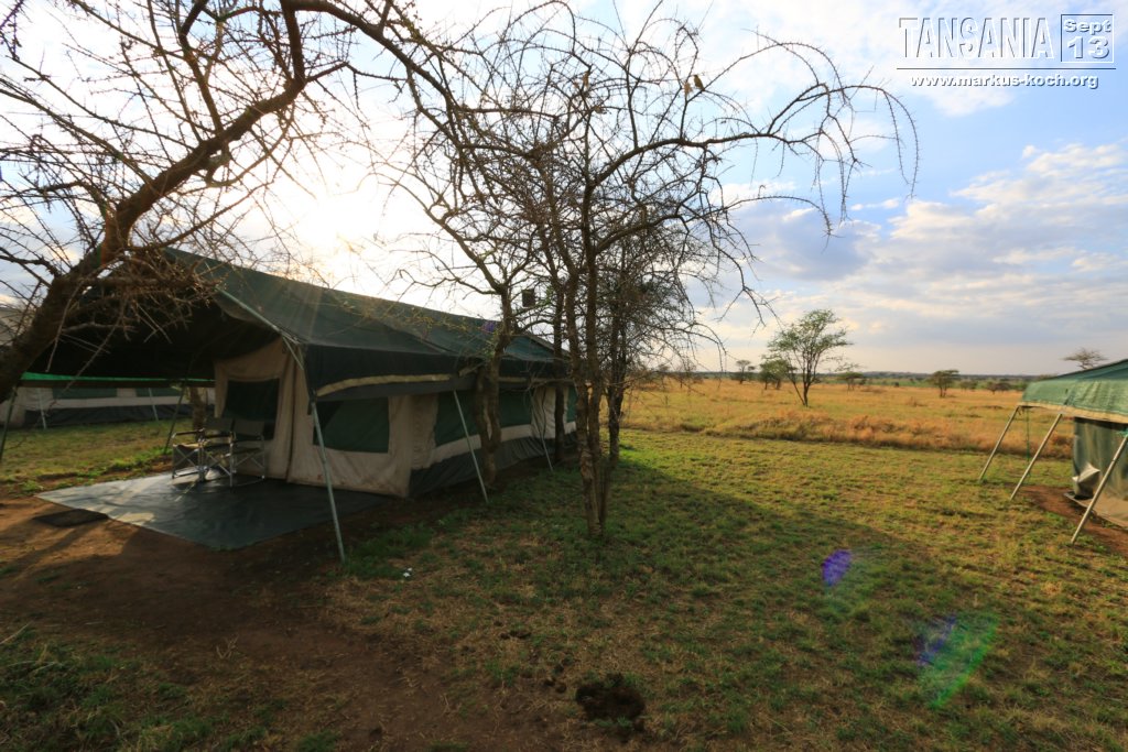 Anschließend kamen wir in unserem Wildcamp an. Das ist wirklich ein Wildcamp!!!! Kein Zaun mitten in der Serengeti. Wir übernachten hier in festen Zelten mit integrierter Dusche und WC (Spülung ist per Wasserkrug (Plumpsklo) ;)). Raus darf man nachts nicht mehr – will man auch ehrlich gesagt nicht. Es streunen Büffel, Affen, Zebras und Hyänen durchs Camp!!!! Marie hat kaum ein Auge zugemacht, da die Hyänen ziemlich grusselige Laute von sich geben 🙂