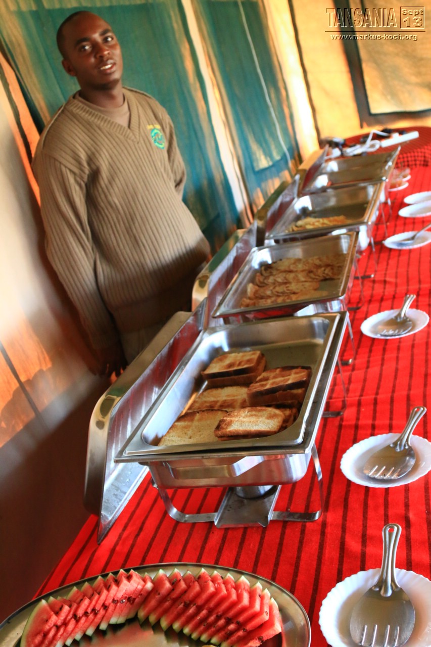 Das Frühstück im Wildcamp war für diese Verhältnisse fantastisch! Und während man am Frühstückstisch sitzt laufen dutzende von Zebras in 100 m Entfernung vorbei. Echt krass!