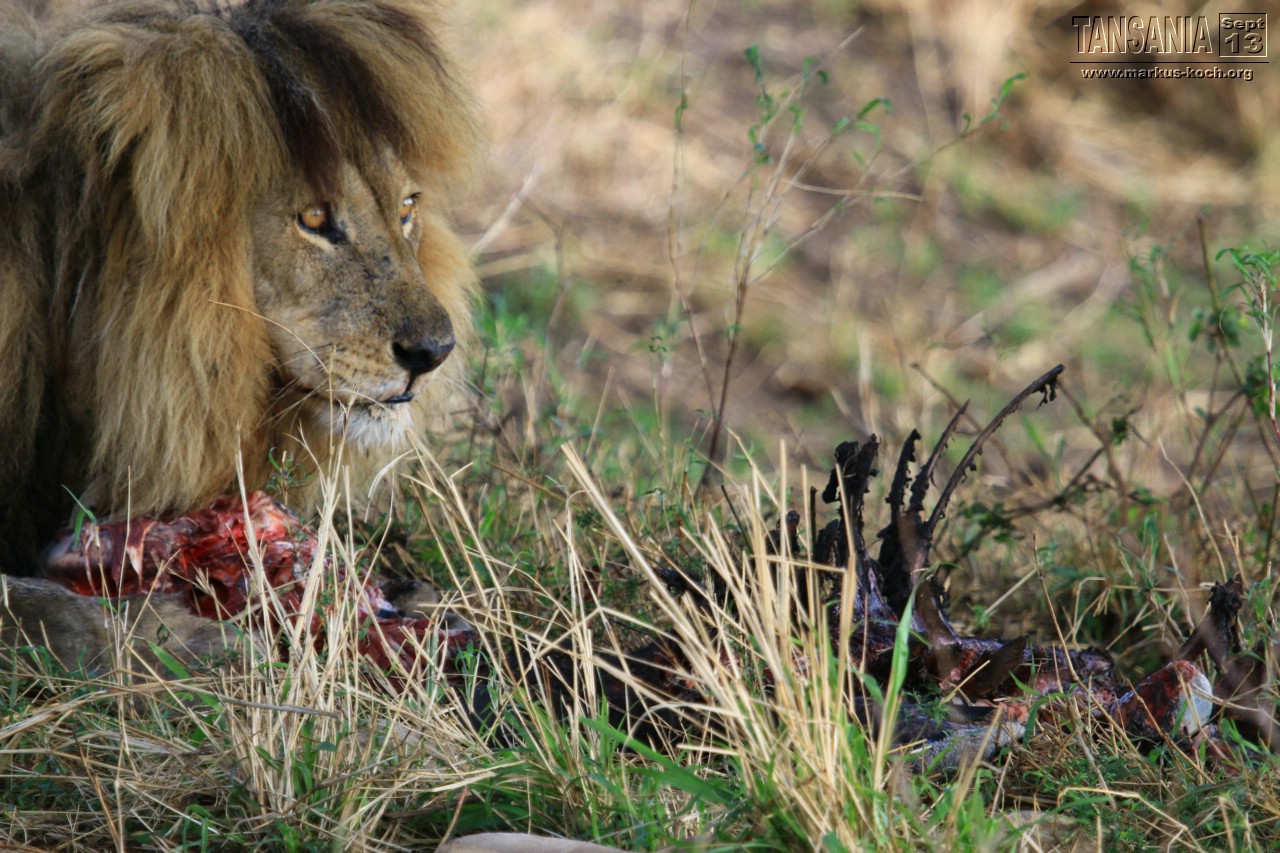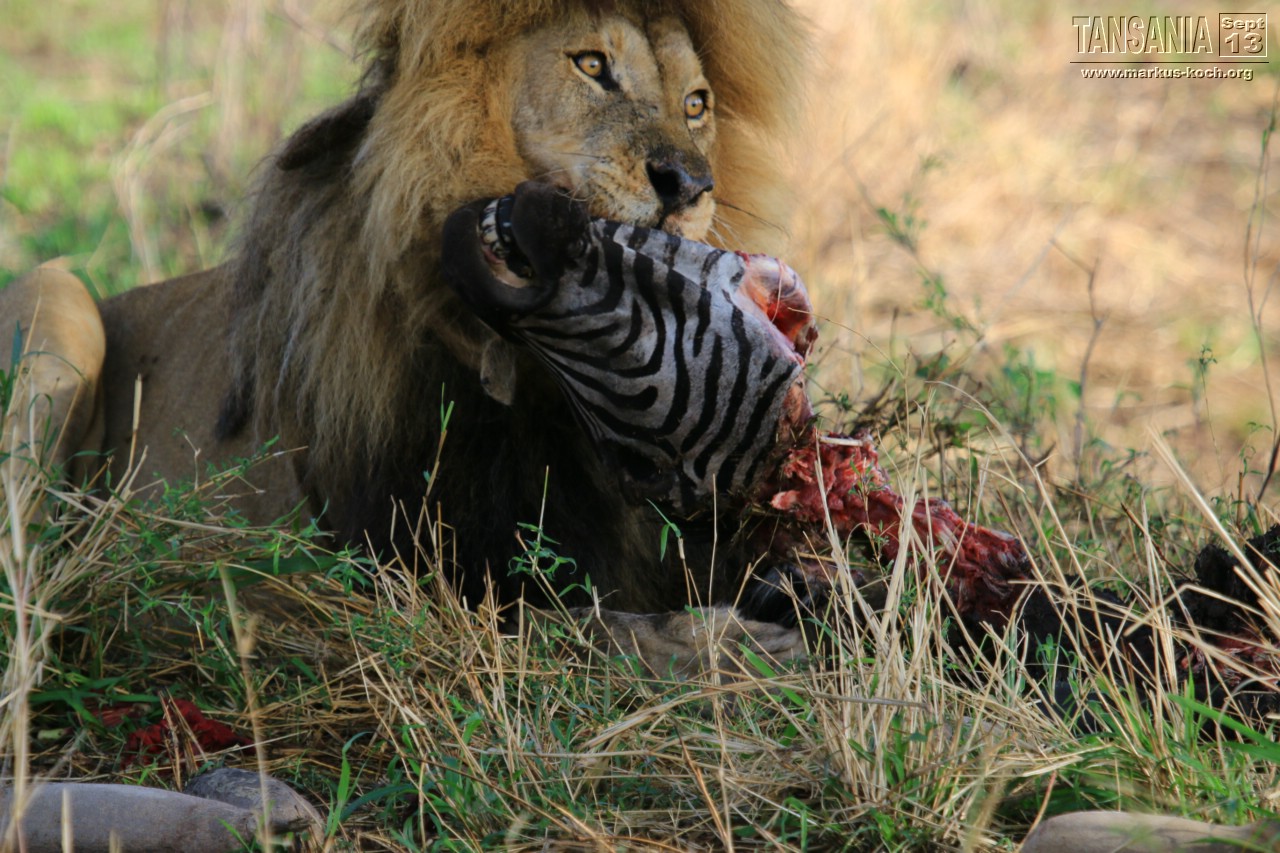 Zuvor verspeiste ein Löwe noch sein in der Nacht erlegtes Zebra.