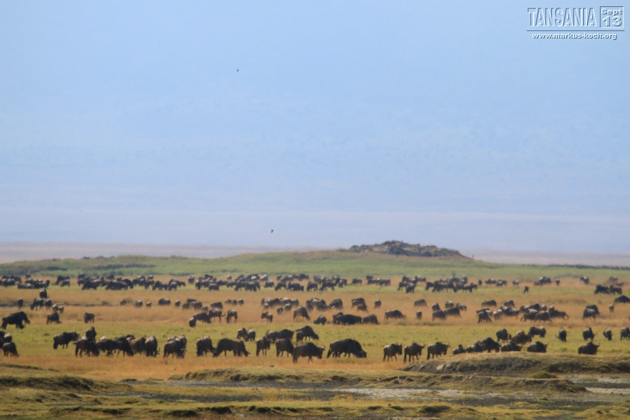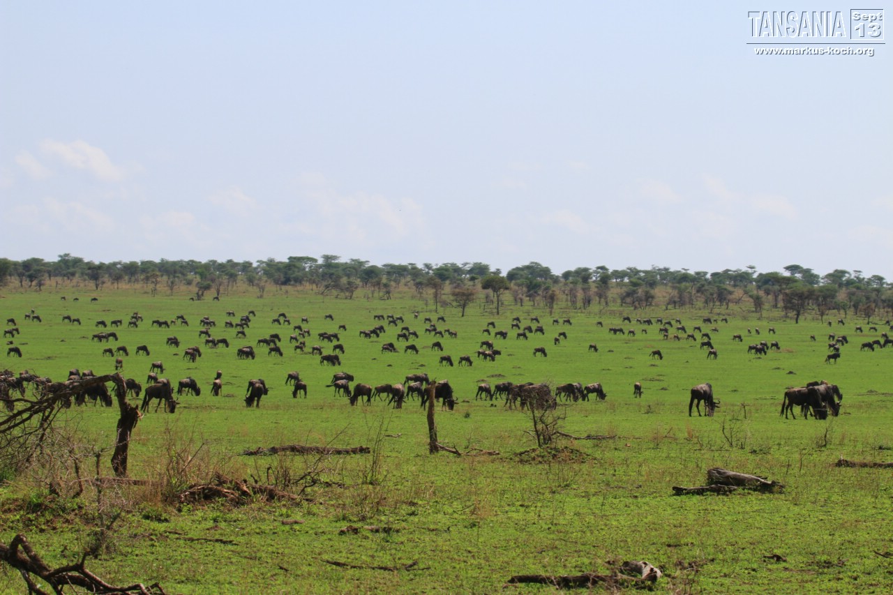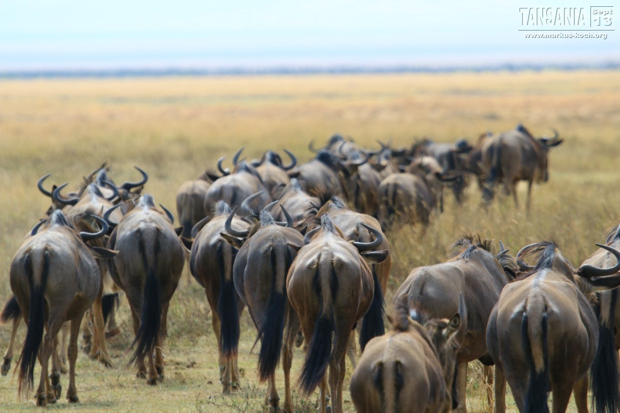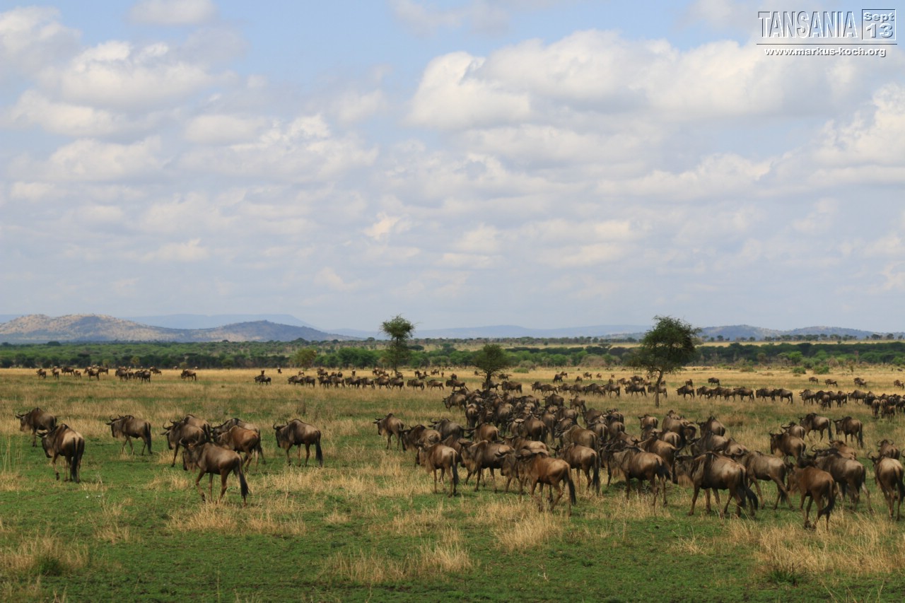 1,2 Millionen Gnus, 200.000 Zebras, und hundertausende anderer Tiere wandern über das Jahr verteilt rund herum in der Serengeti bis in den Norden in die Masai Mara (Kenia) und wieder zurück. Die Tiere wissen genau, zu welcher Jahreszeit es wo Futter gibt und folgen so jährlich diesem Zyklus.