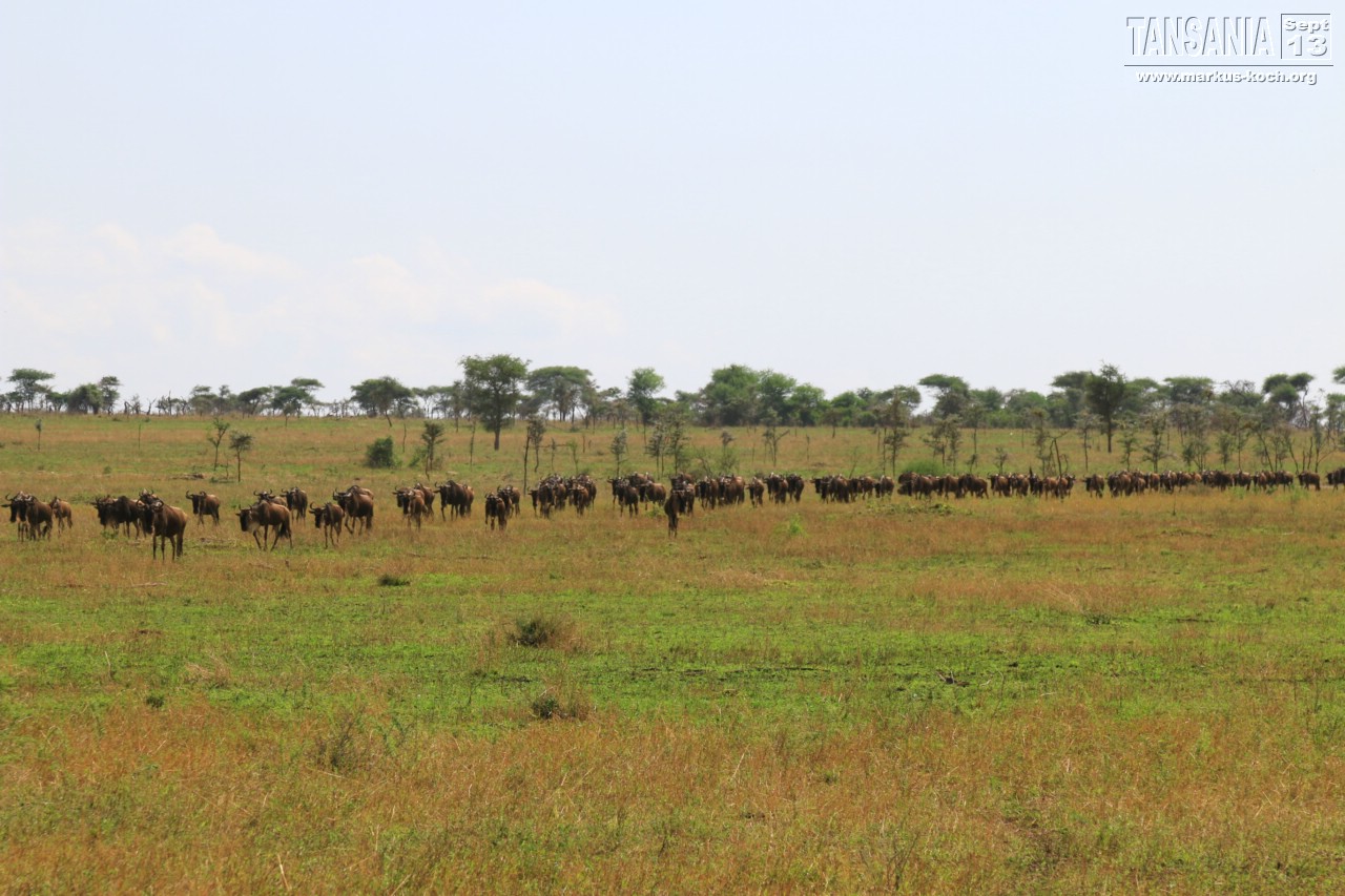 Momentan ist die Wanderung im Nordosten der Serengeti unterwegs. Tausende dieser Gnus konnten wir auch sehen auf der letzten Pirschfahrt in dieser Steppe.