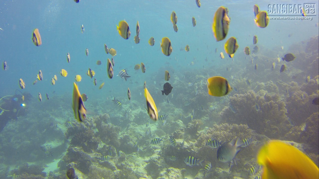 Am Samstag habe ich mit One Ocean zwei Tauchgänge im Mnemba Inselatoll absolviert. Viele Fischschwärme, ein Baby-Weißspitzenriffhai und das piepsen von Delphinen wurden entdeckt. Viel mehr aber auch nicht. Deswegen bleibt weiterhin Ägypten bisher mein Favorit.