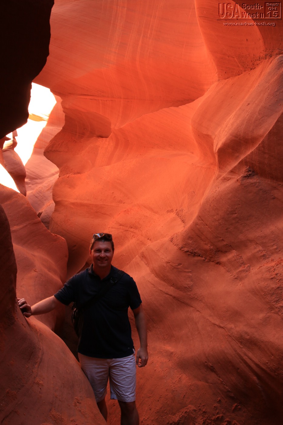Nachdem der Lower Antelope Canyon wieder offen hatte, konnten wir nicht anders um doch einen Blick zu riskieren. $28 pErw. ärmer ging die Tour auch schon los. Über Treppen wurden wir zum Eingang gebracht, von wo es dann der „Schlucht“ entlang ging. Auch dieser war wunderschön! Heller und farbiger als der Upper tags zuvor.
