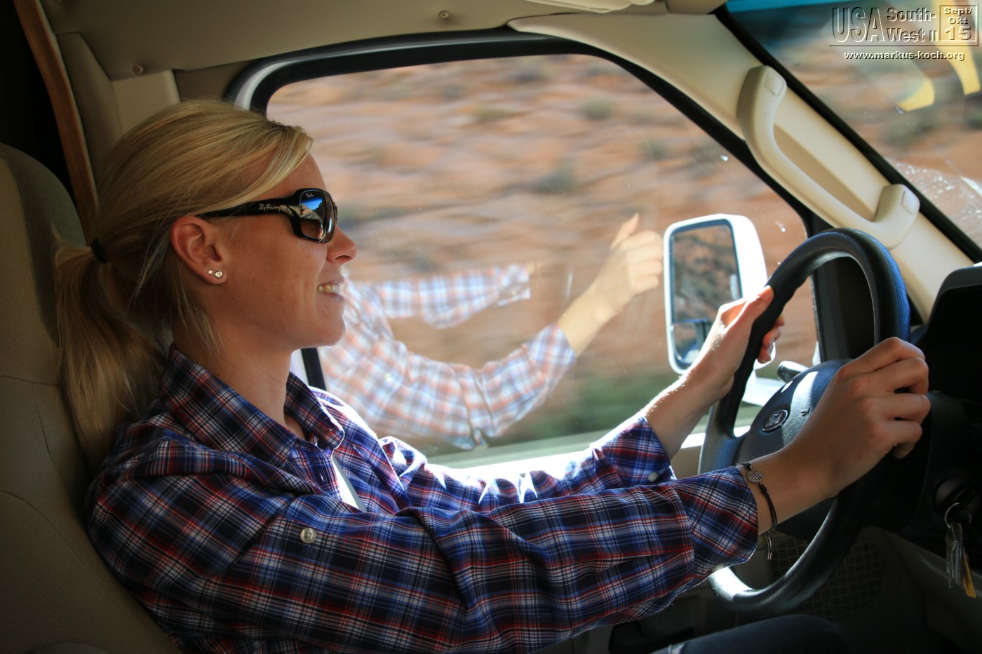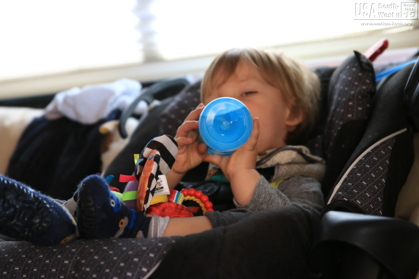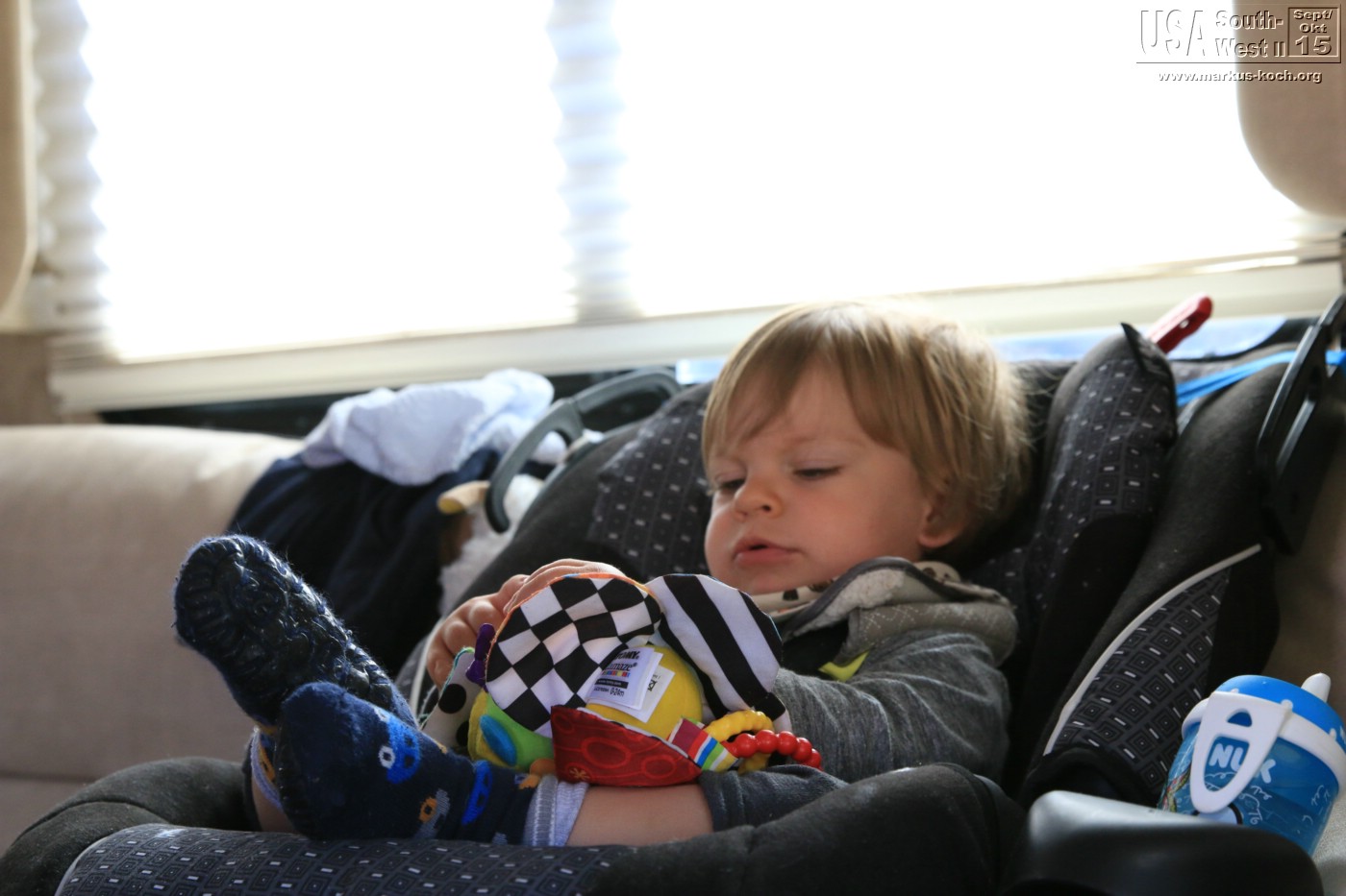 Marie fuhr wieder mal das WoMo – dieses Mal 20 Meilen auf dem Highway – bis Luca sich nicht mehr von mir im Kindersitz bespaßen lassen wollte 🙁 Super hat sie es auch dieses Mal gemacht 🙂