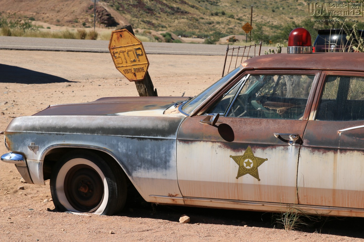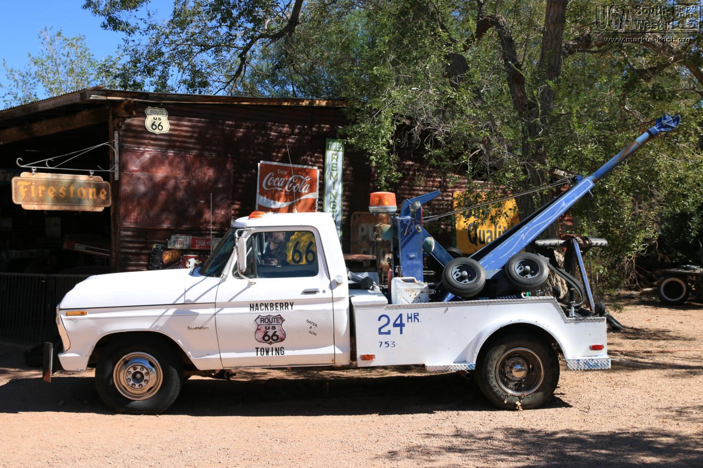 Unsere Fahrt ging zügig vom Grand Canyon über Seligman auf die Route 66 bis zum Hackberry Fotostopp. Das Teilstück war komplett langweilig, würde ich niemanden empfehlen.