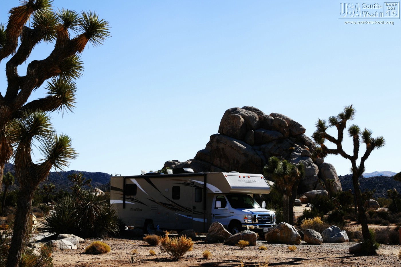 Vorbei an etlichen Joshua Bäumen nahmen wir Kurs auf den Ryan Campground. Es war wieder ein CG, den man nicht reservieren konnte und so hatten wir auch Glück, dass wir noch eine tolle Site bekamen.