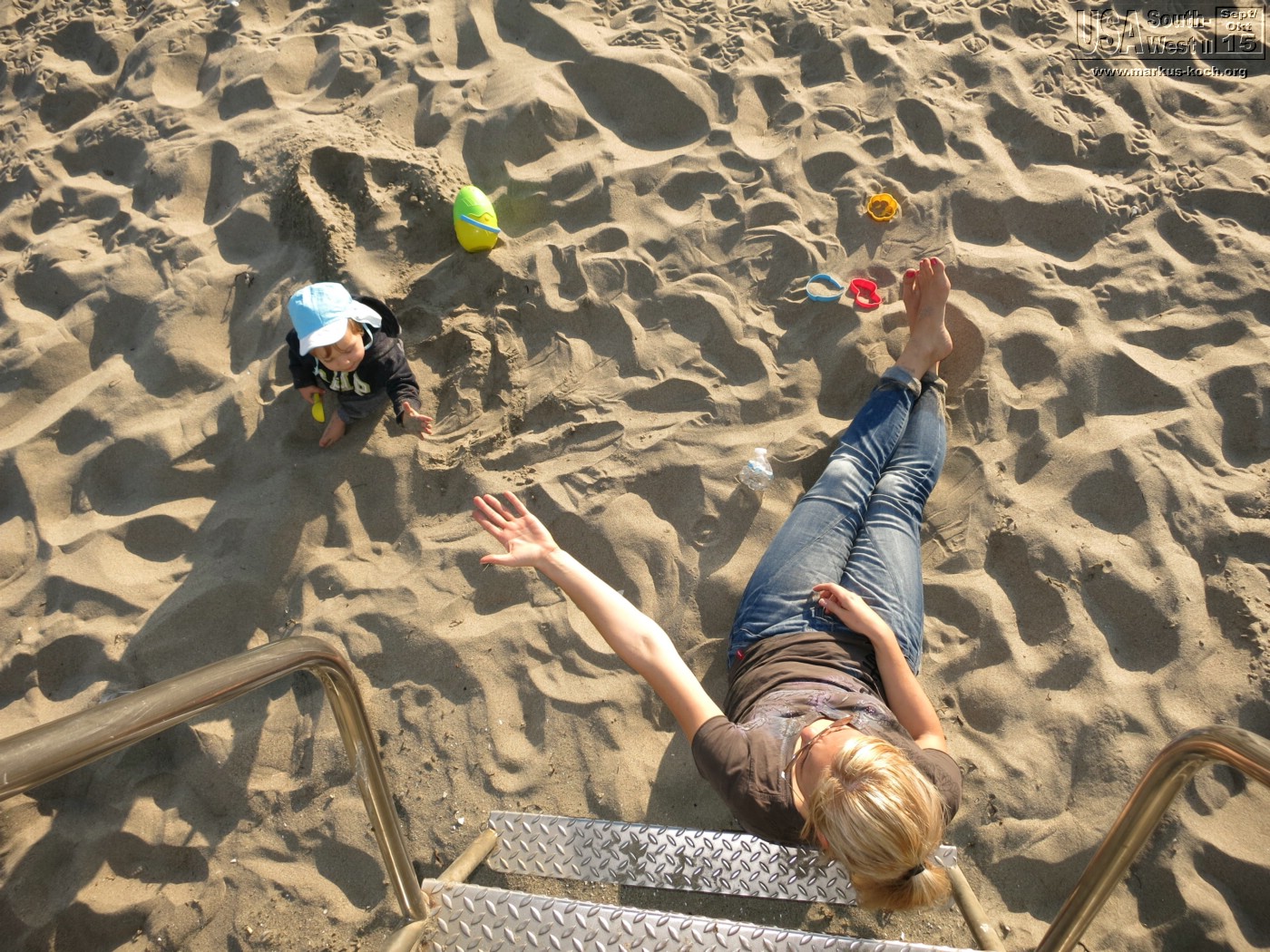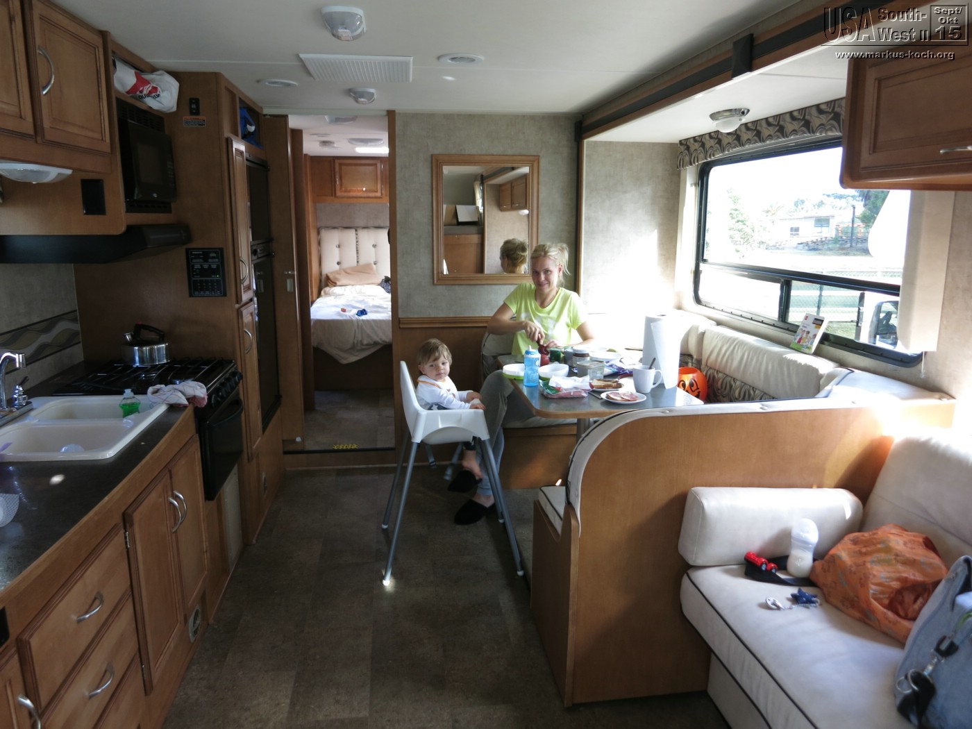 Dafür wurden wir von Sonnenschein direkt hinter einer Düne am Meer geweckt. Am Vormittag räumten wir den Rest in die Schränke und putzten den völlig dreckigen Boden erstmal richtig durch. Wahrscheinlich wurde das Fahrzeug immer nur Besenrein weiter übergeben, wie gefordert. Aber mit Kleinkind an Board sollte der Boden schon etwas reinlicher sein.