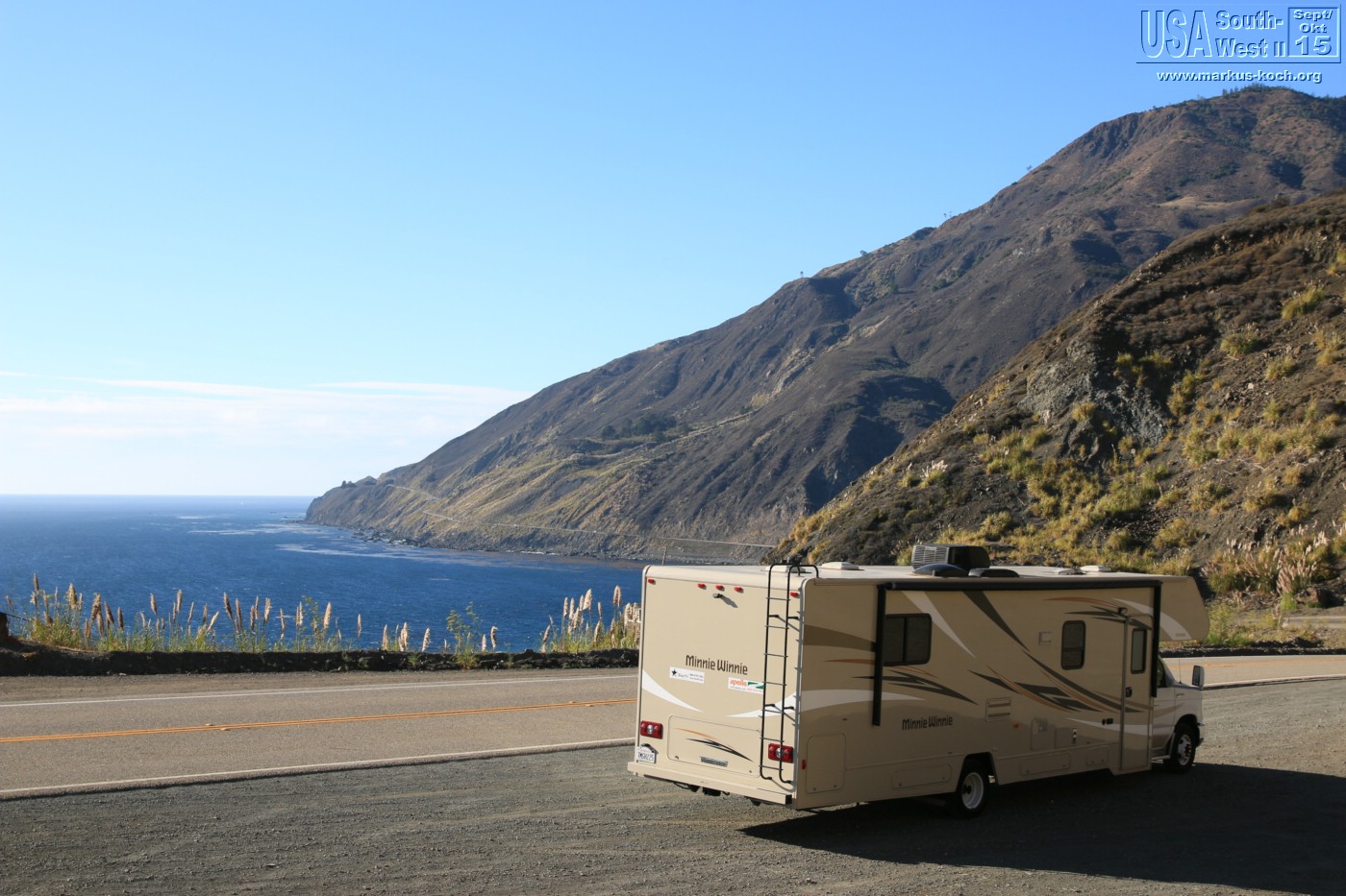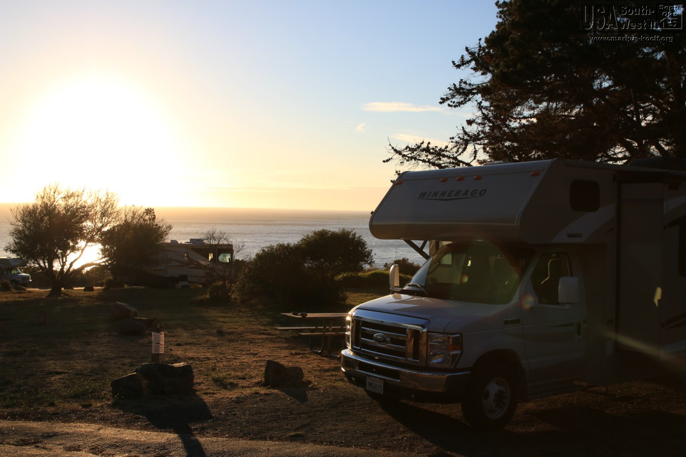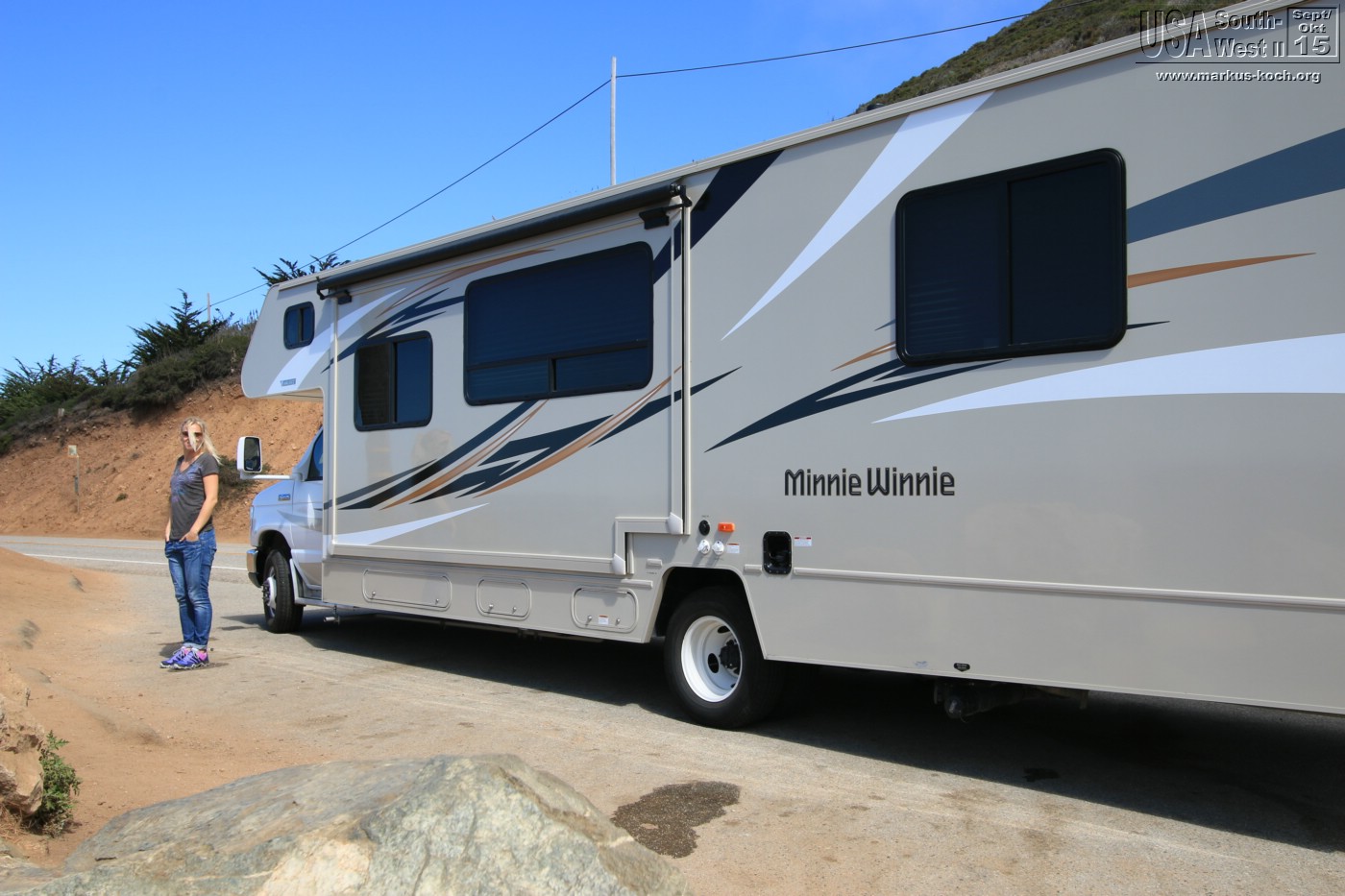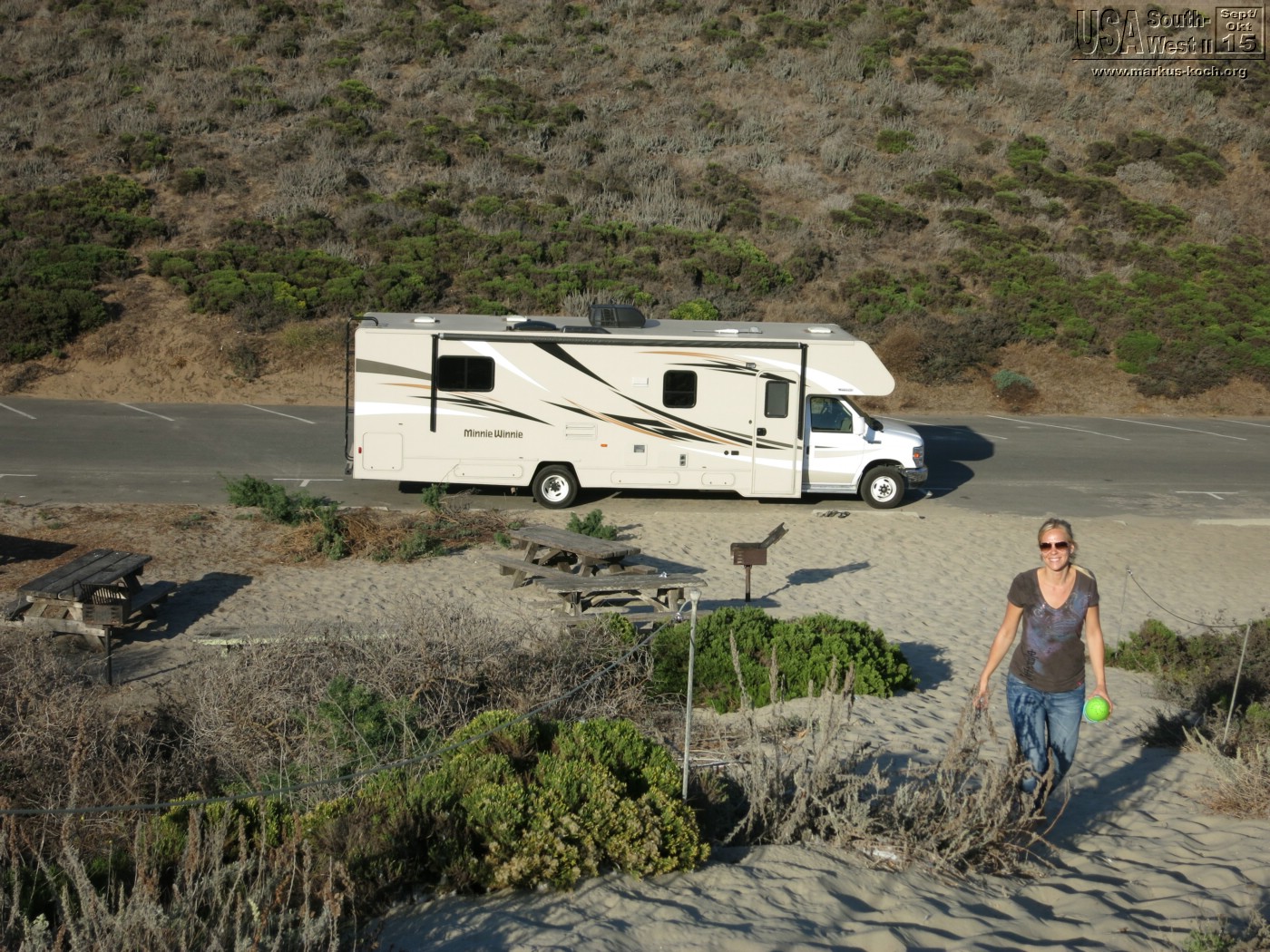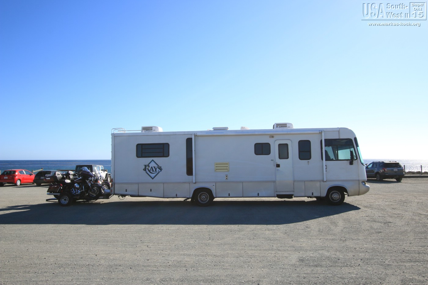 Am Wunsch-Campingplatz angekommen hat uns das Office aber leider abgewiesen, da wir kein Allradantrieb haben. Plan war, dass wir auf einem befahrbaren Strand übernachten wollten, was sicher eines der coolsten Abenteuer geworden wäre. Reservieren konnte man nicht und der Mann aus dem Office schickte uns zu einem anderen CG in der Nähe. Leider war dieser schon ausgebucht und wir wurden wieder weitergeschickt. Am Ende sind wir in Pismo Beach auf einem RV Resort gelandet. Mit Full Hockup – was bedeutet: Strom- und Wasseranschluss, Ablassroher für Black & Grey Water (Kacka & Abwasser). Das hat nun schonmal super geklappt. Jetzt wissen wir, wie das so vor sich geht 🙂