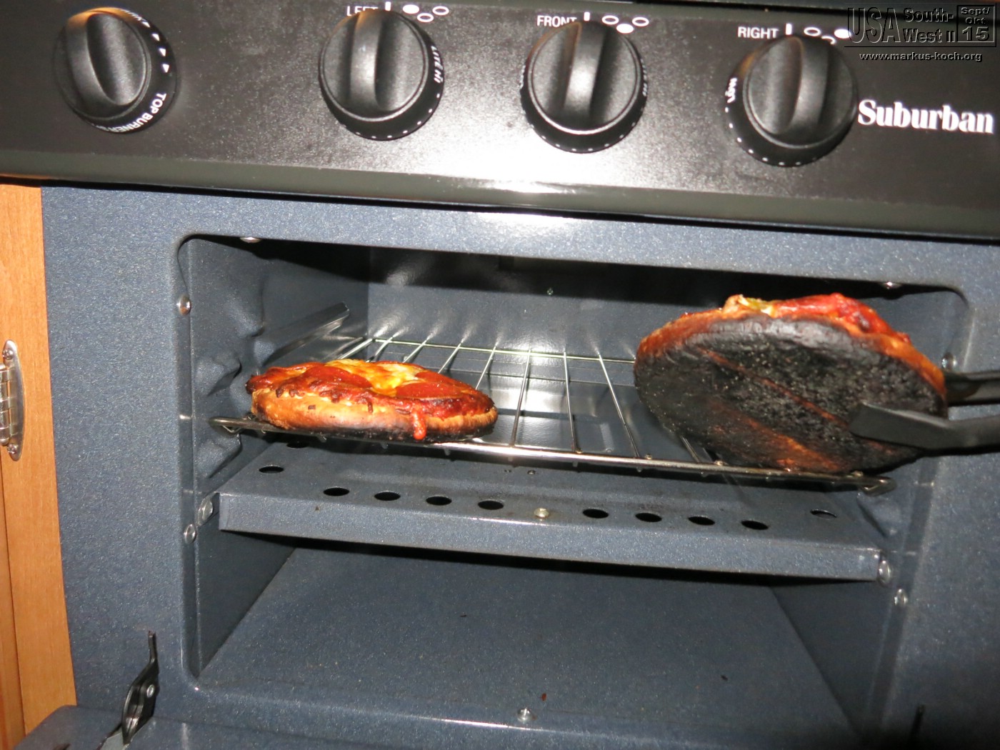 Es war schon spät geworden, Luca war schon am Schlummern, wir versuchten eine Pizza im Gasofen zu zaubern, aber leider war irgendwas schief gelaufen, was wissen wir noch nicht 😉